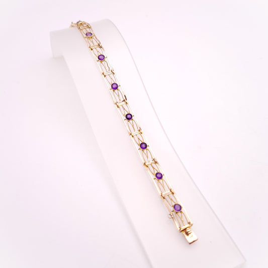 9ct Rose Gold Amethyst Set Open Work Rectangular Link Bracelet