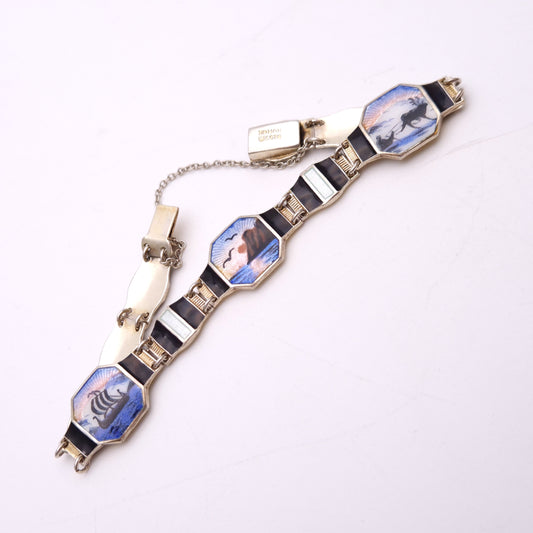 Sterling Silver Norwegian Enamel Scene Panel Bracelet by Bernard Meldahl