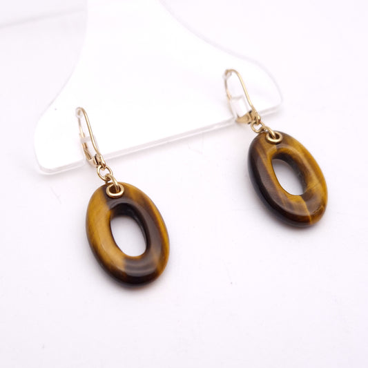 9ct Yellow Gold Tigers Eye Oval Torus ( Donut / Doughnut) Drop Earrings
