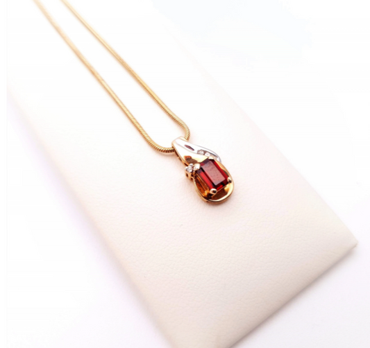 9ct yellow gold garnet and diamond two-tone pendant and chain necklace.