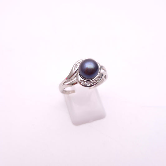 9ct White Gold Black Pearl and Diamond Twist Ring