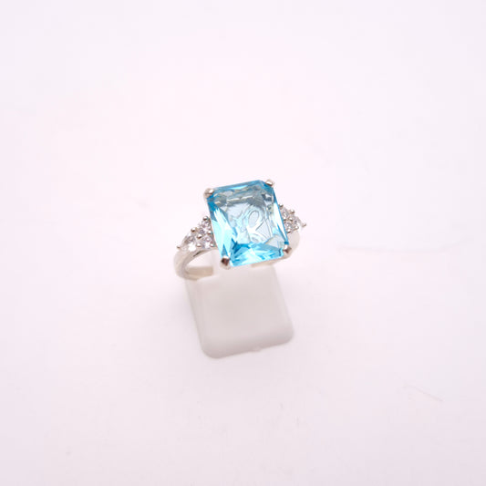 Sterling Silver Large Chunky Blue Paste Stone and CZ Trilogy Ring