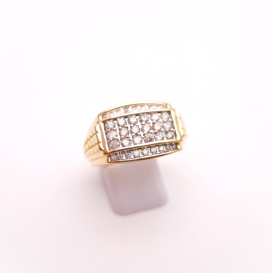 9ct Yellow Gold Gents Diamond Set Block Signet Statement Ring