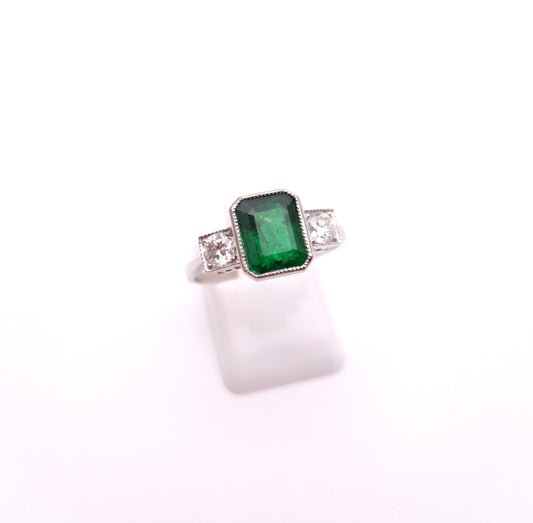 Platinum Natural Emerald and Diamond Trilogy Ring