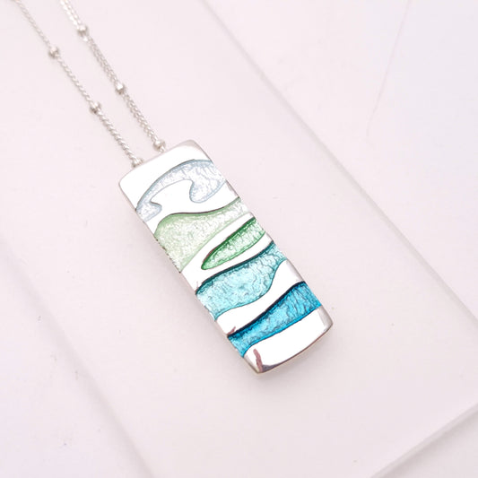 Sterling Silver Multi-coloured Blue Enamel Rectangular Pendant Necklace