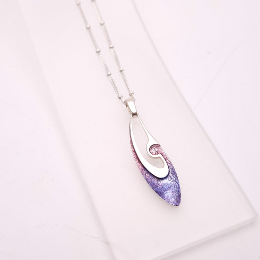 Sterling Silver Abstract Pink / Purple Open Enamel Pendant Necklace