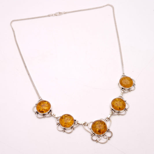 Sterling Silver Filigree Amber Multi-Stone Necklace