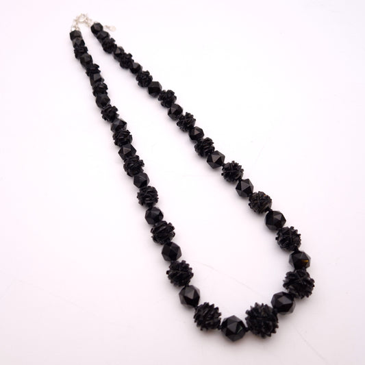 Sterling Silver Carved Whitby Jet Beaded Necklace