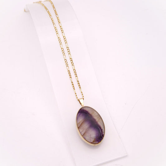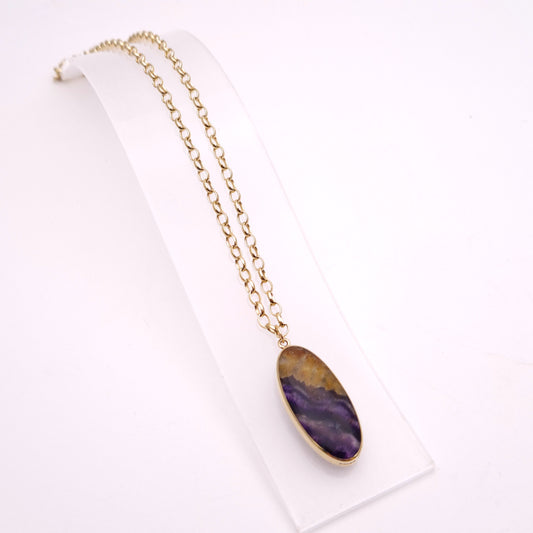 9ct Yellow Gold Large Oval Double-Sided Blue John Pendant and Chain Necklace