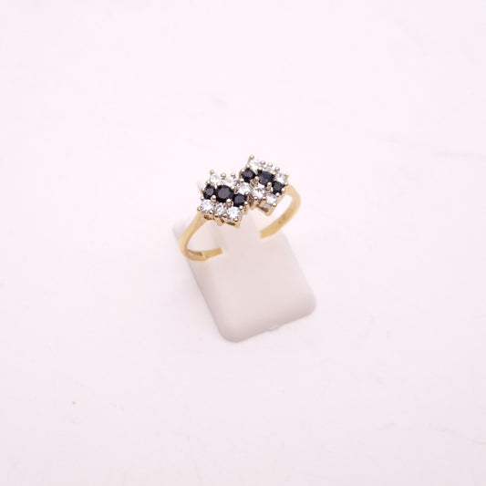 9ct Yellow Gold Vintage Sapphire and White Stone Deco Style Cluster Ring