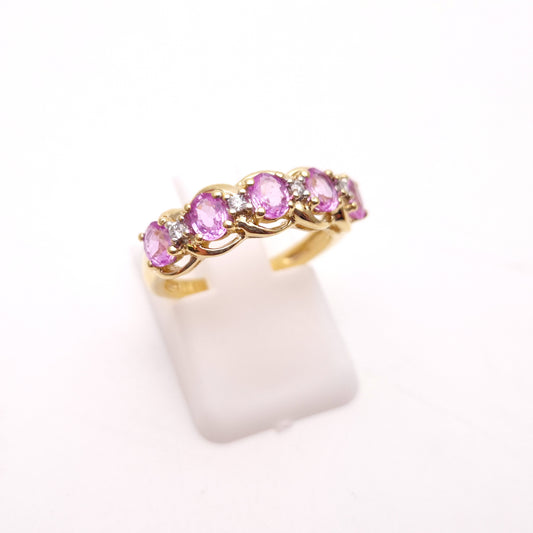 9ct Yellow Gold Pink Sapphire and Diamond 1/2 Eternity Row Ring