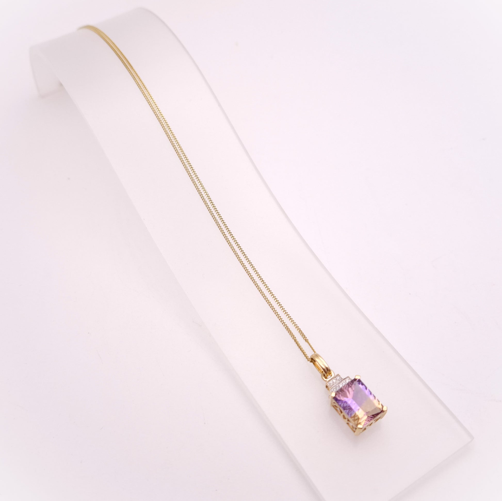 10ct Ametrine and Diamond Pendant and 9ct Curb Chain