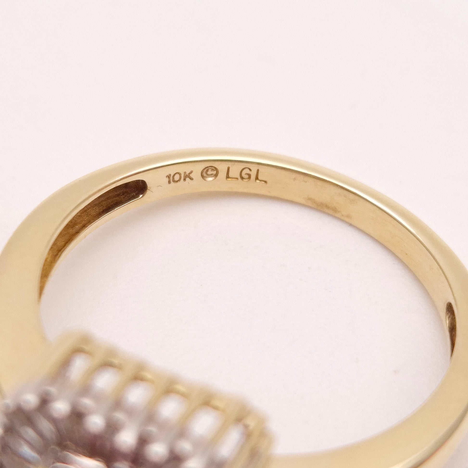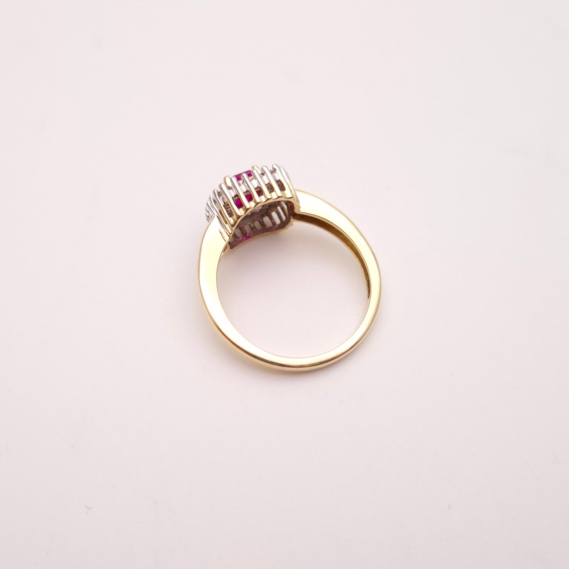 10ct Yellow Gold Emerald Cut Ruby and Baguette Cut Diamond Cluster Ring