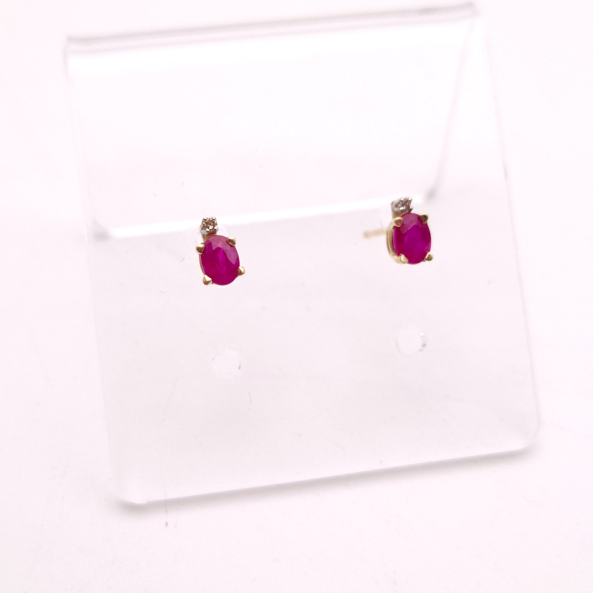 10ct Yellow Gold Oval Cut Ruby and Small Round Diamond Stud Earrings