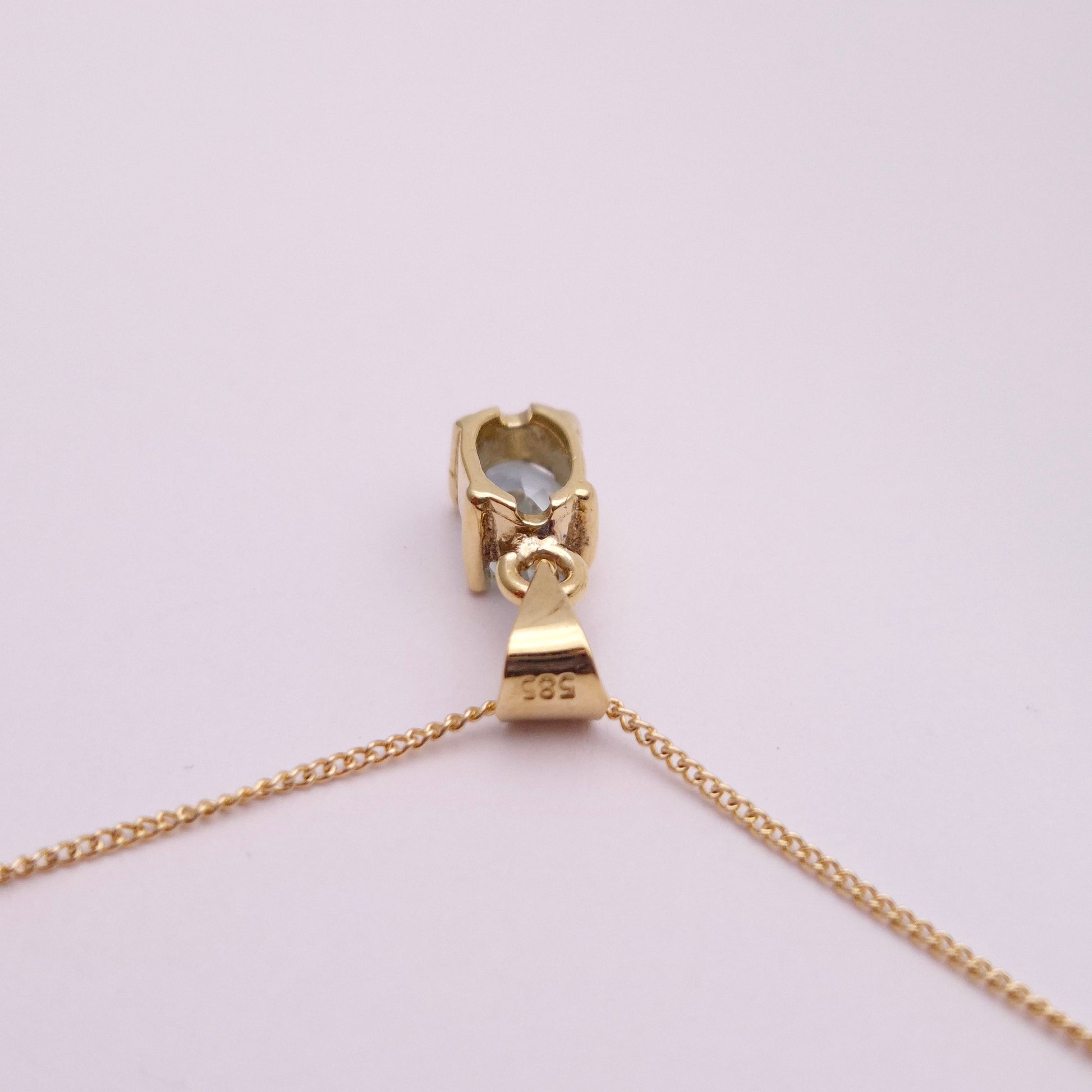 14ct Yellow Gold Aquamarine Solitaire Pendant and 9ct 18 inch Gold Chain