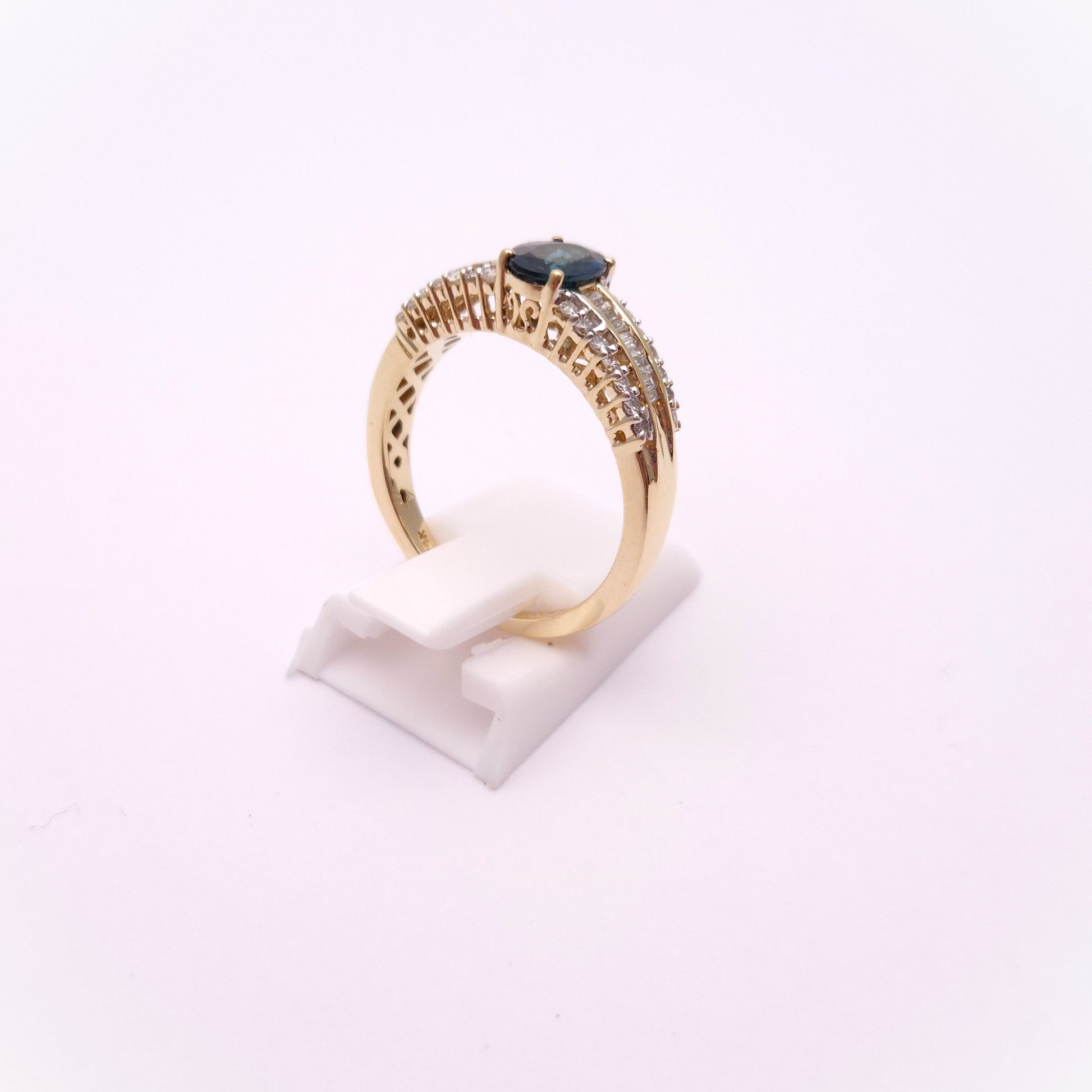 14ct Yellow Gold Blue Tourmaline and Diamond 1/2 Eternity Style Ring