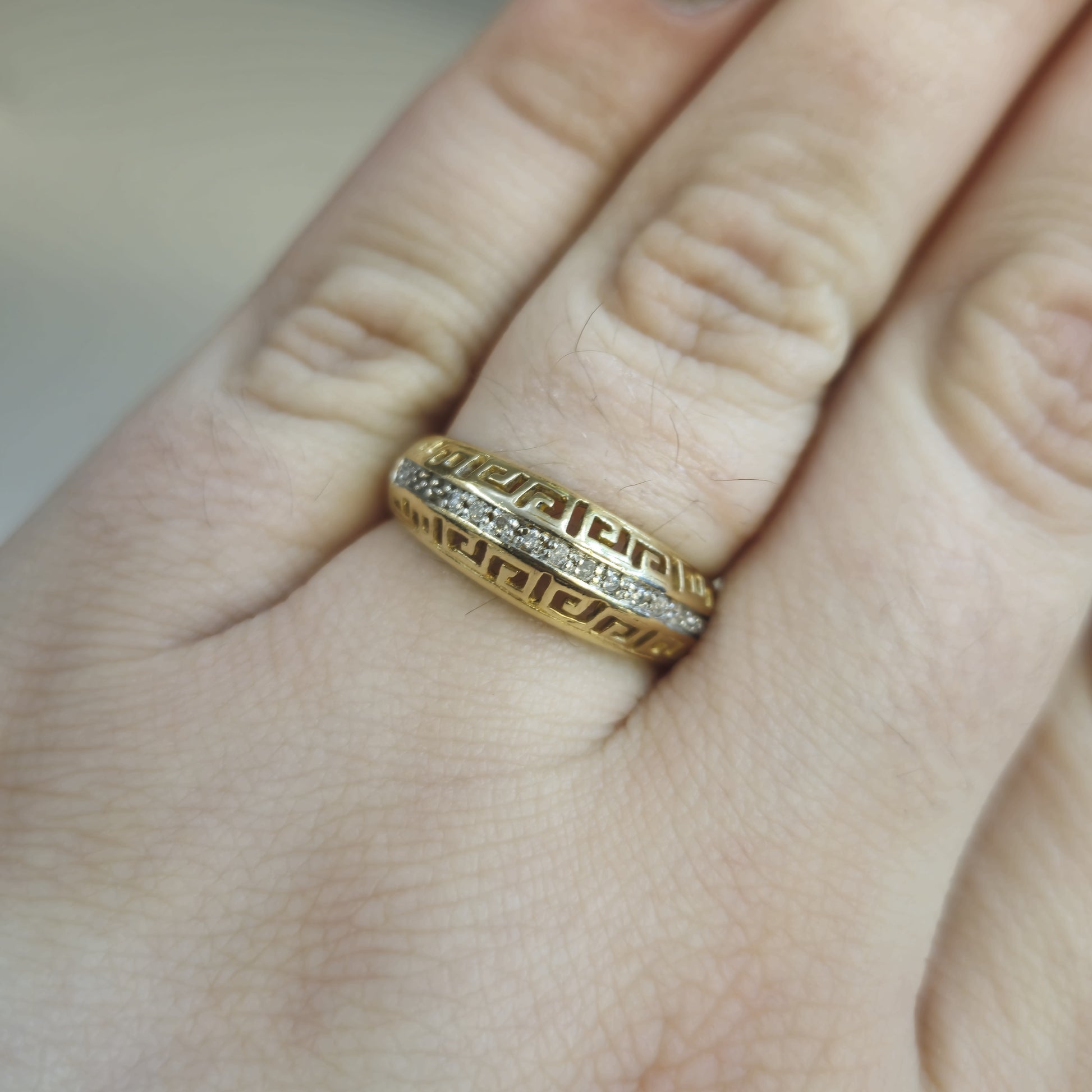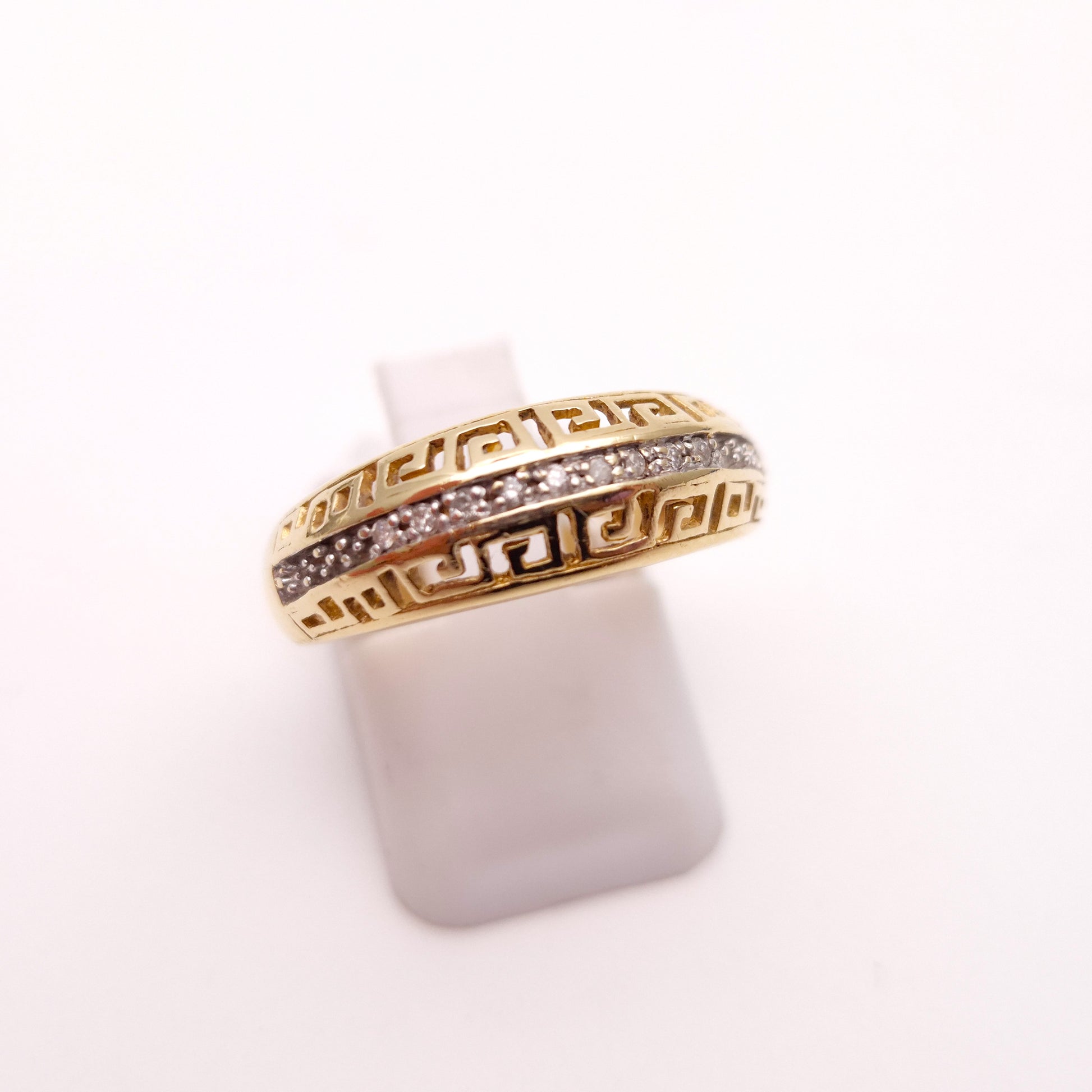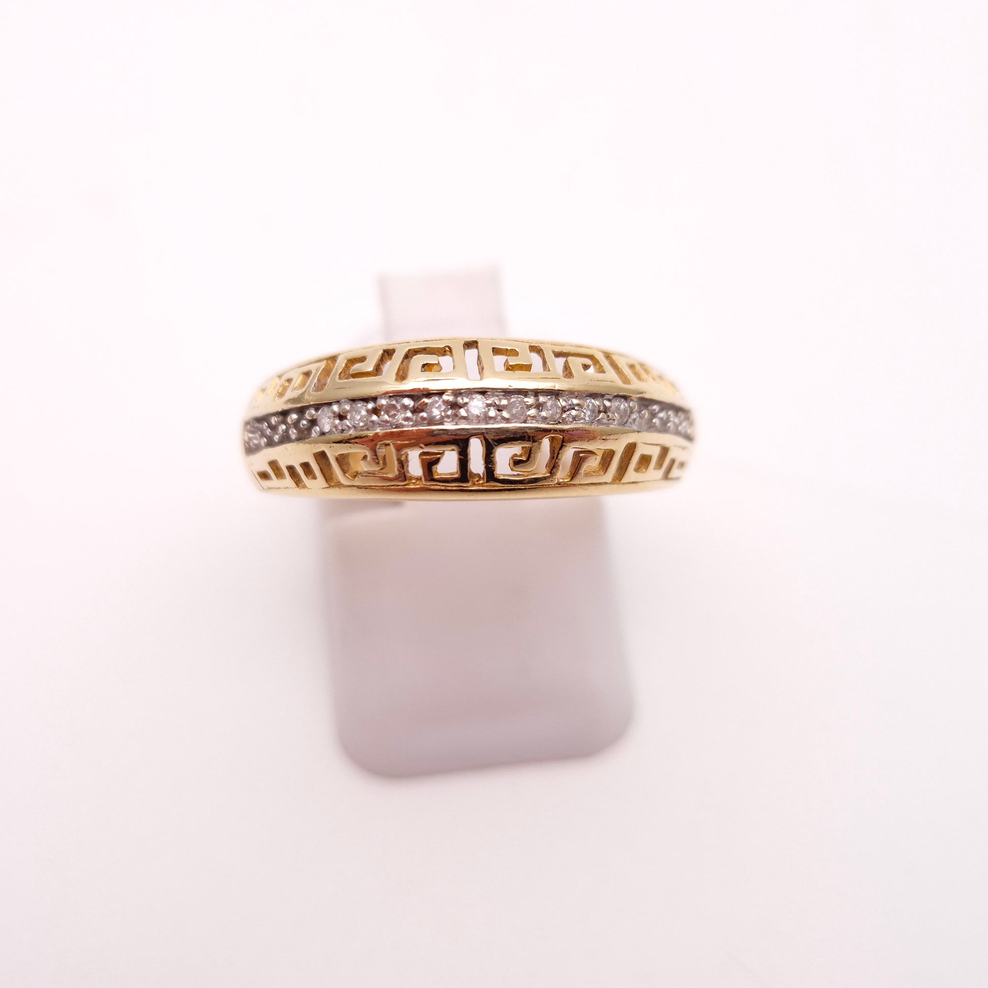 14ct yellow gold Diamond Set Greek Key Style Band Ring