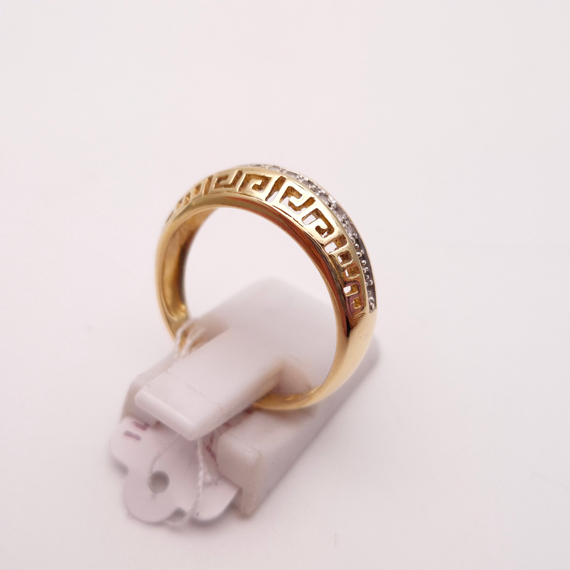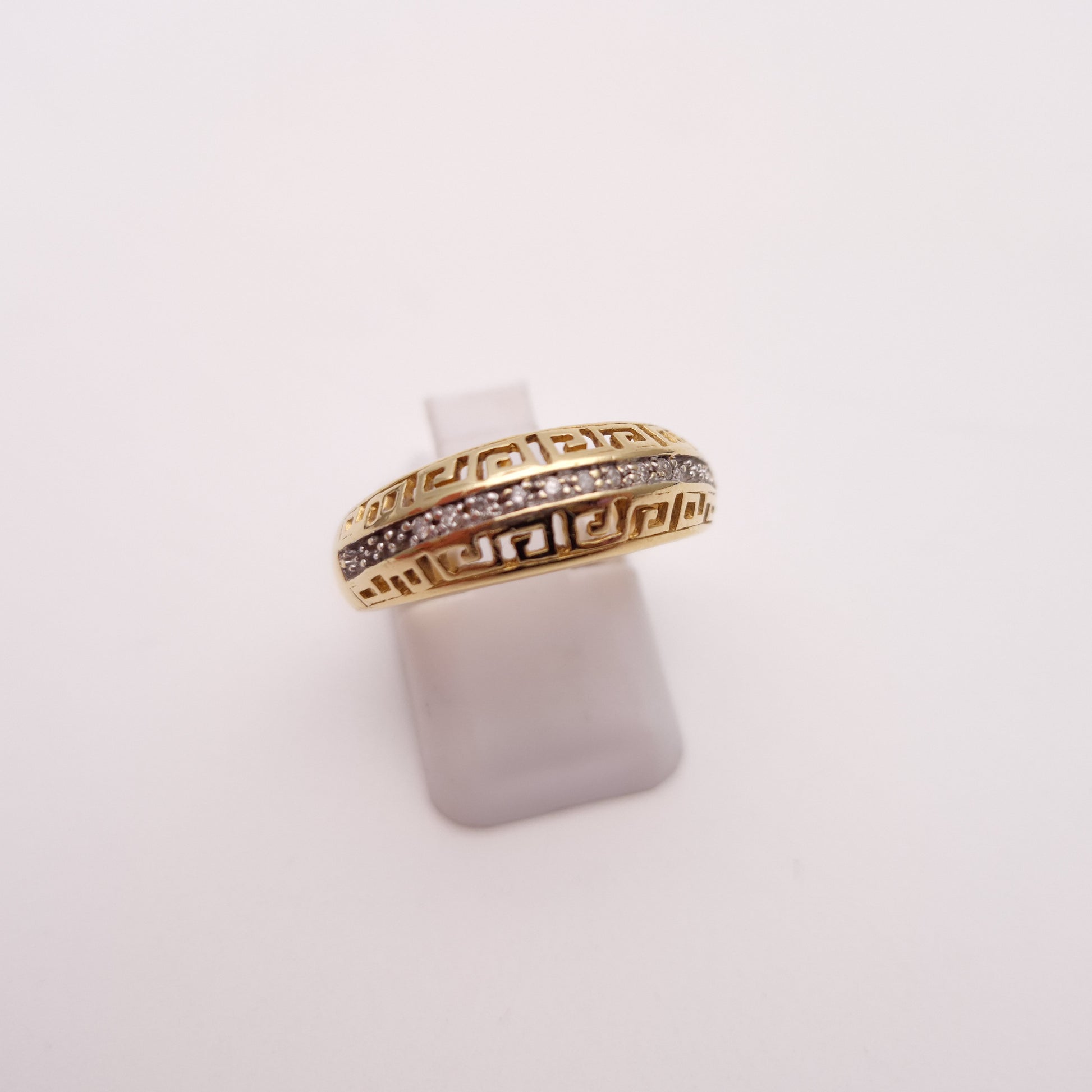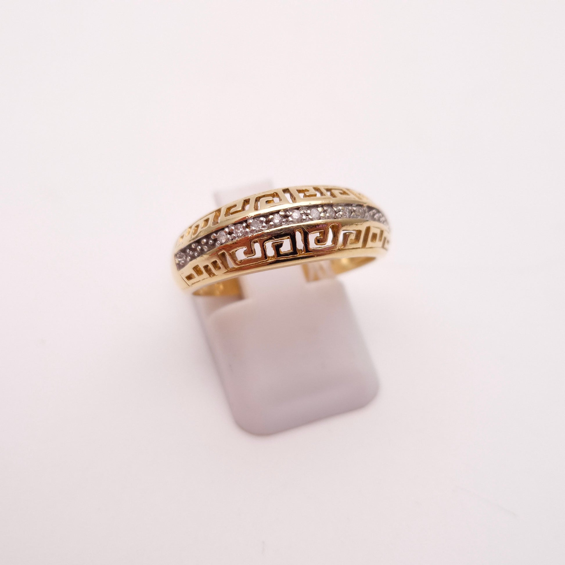 14ct yellow gold Diamond Set Greek Key Style Band Ring