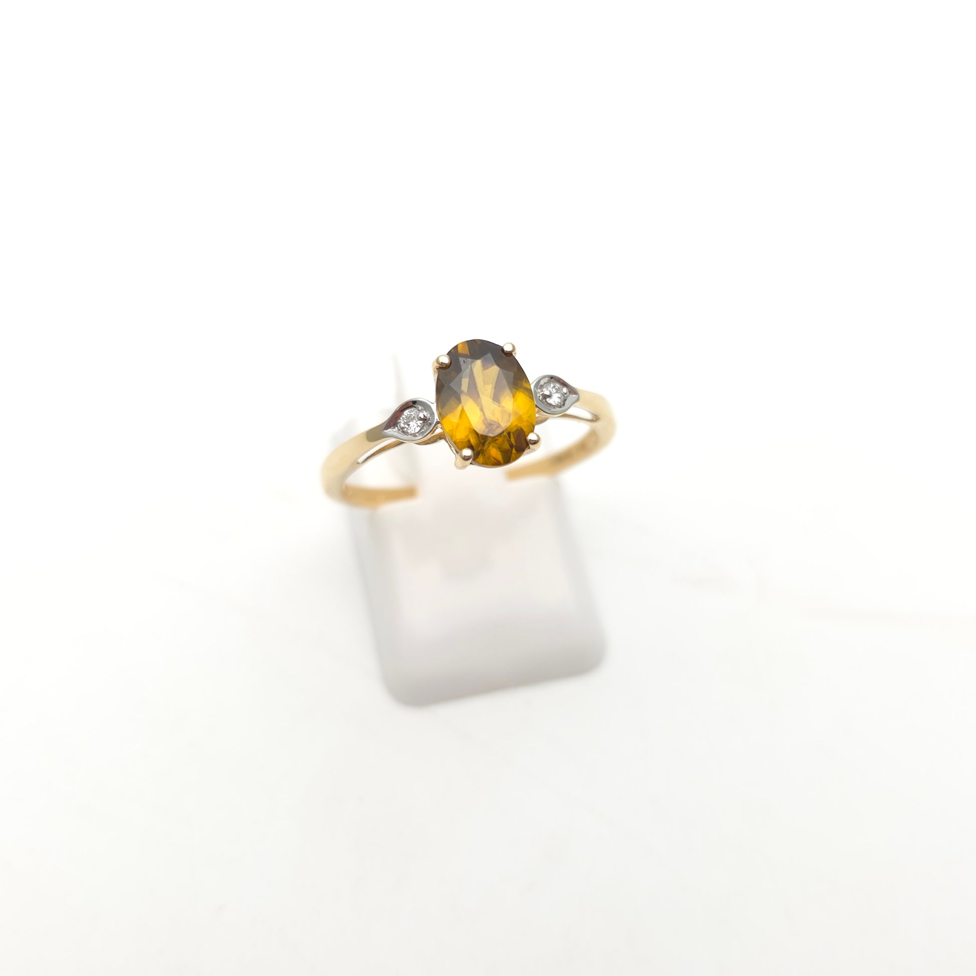 14ct Yellow Gold Oval Cut Golden Zircon and Diamond Trilogy Ring