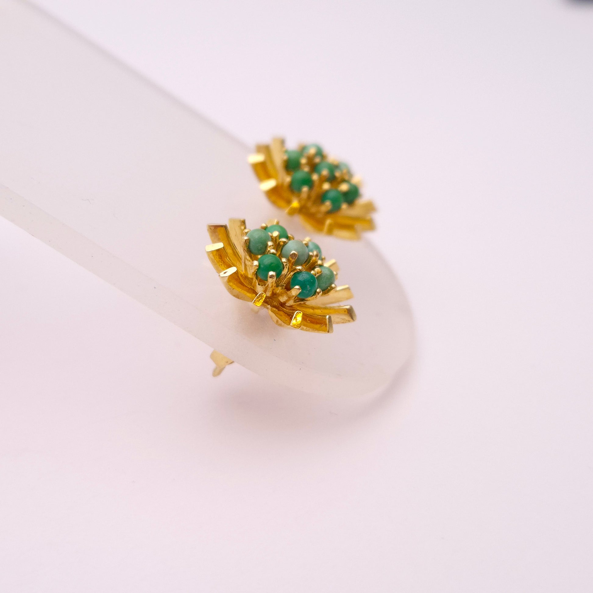 Add a touch of mid-century flair to your jewellery collection with these stunning vintage stud earrings. Crafted in 14ct yellow gold, they feature a captivating starburst design, each adorned with vibrant turquoise cabochons. These earrings are a perfect blend of retro charm and timeless elegance, ideal for adding a pop of colour and personality to any outfit.