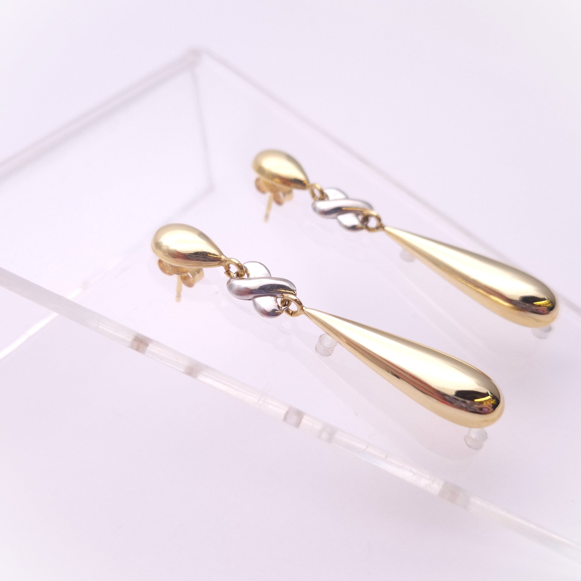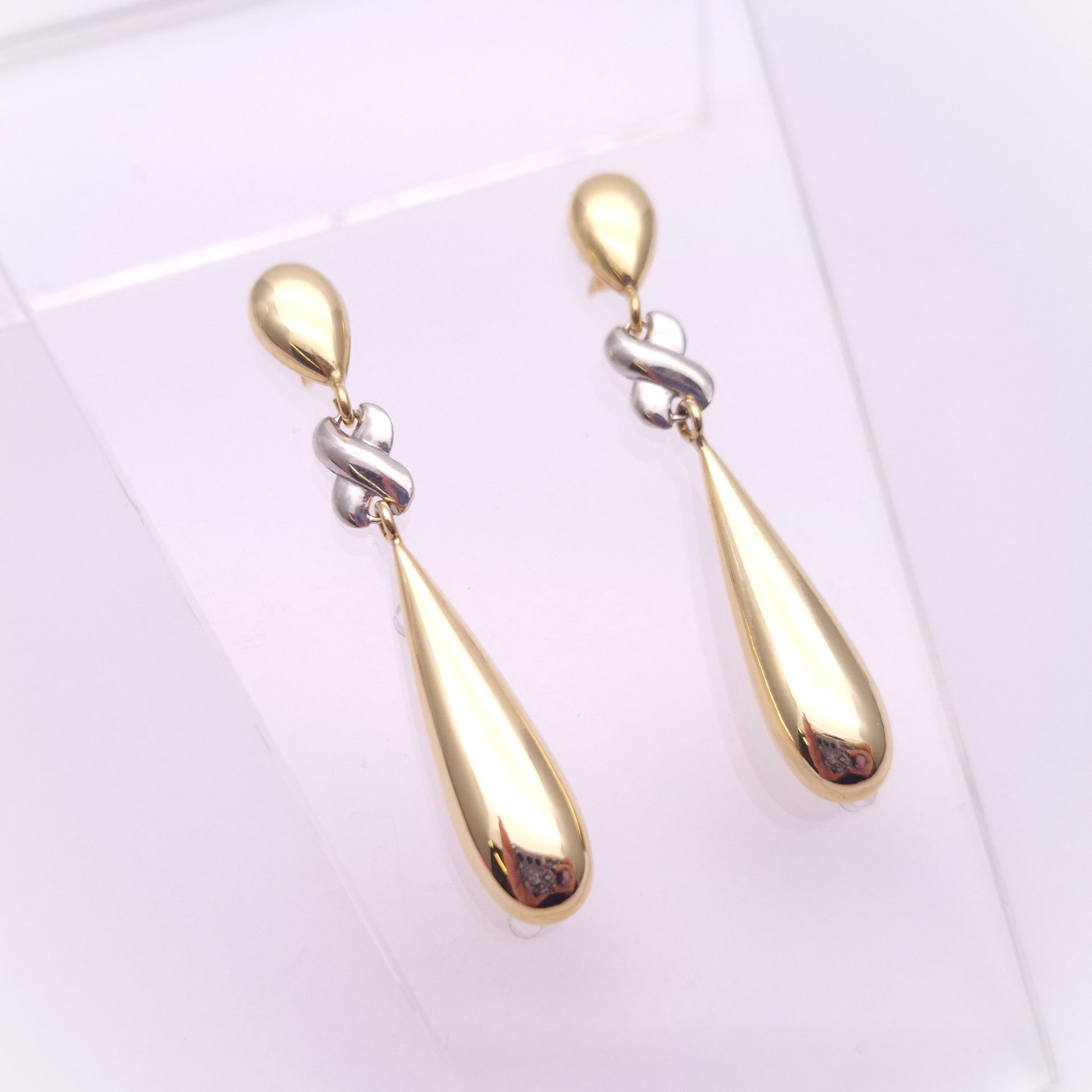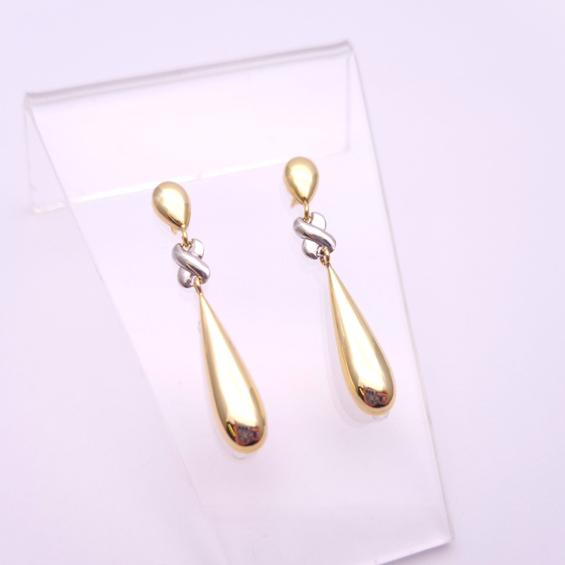 18ct Two Tone 'kiss' X cross and Teardrop Dangle Drop Earring