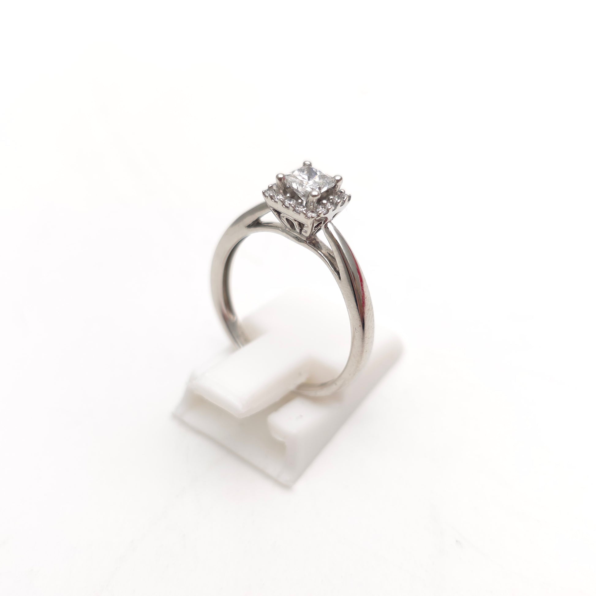 18ct White Gold Princess Cut Diamond Halo Cluster Ring (0.5TCW)