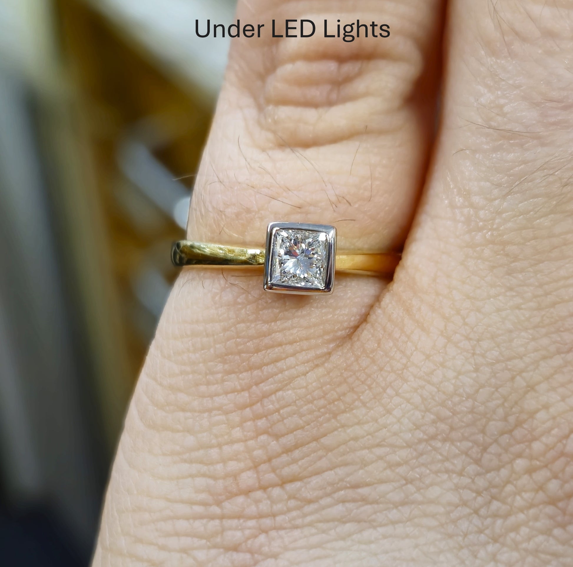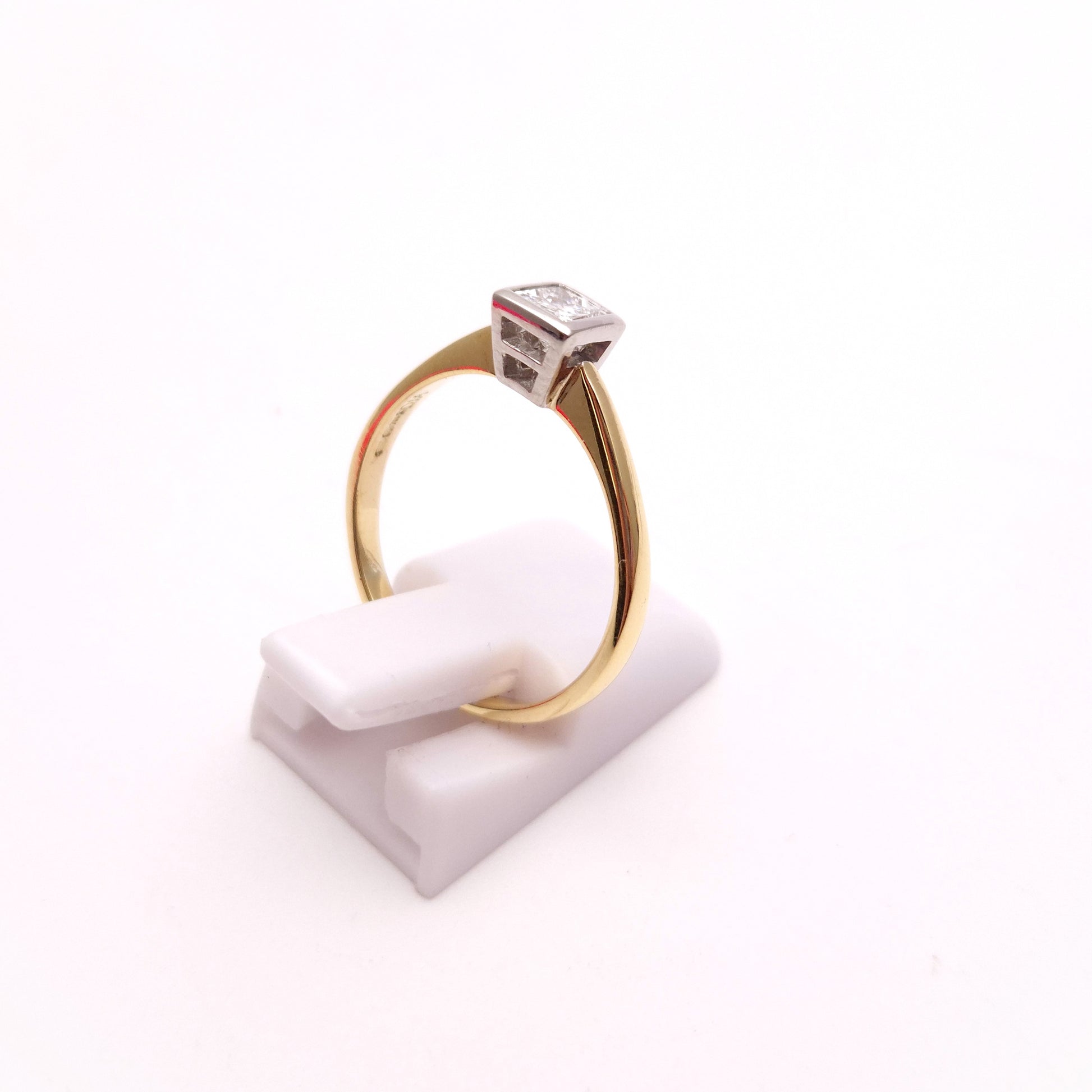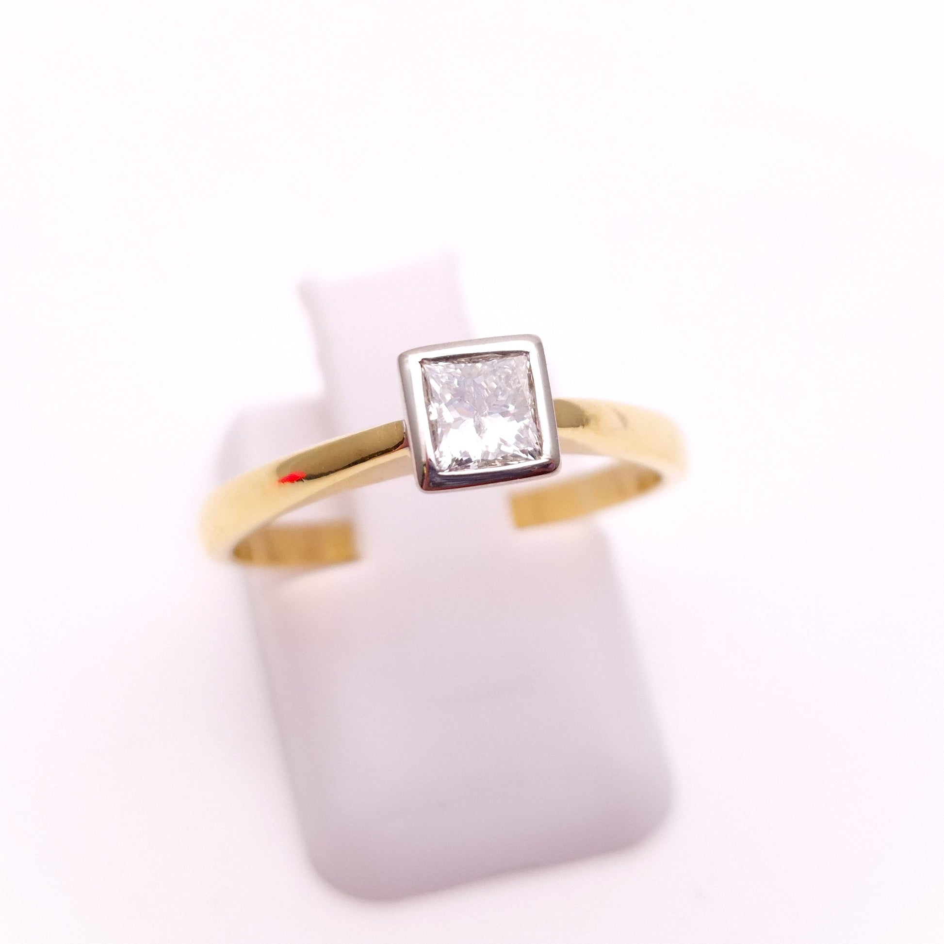 Presenting a classic and elegant solitaire ring crafted in luxurious 18ct yellow gold, showcasing a brilliant 0.33 carat princess cut diamond, with approximately SI2 clarity and H colour. This timeless design highlights the diamond's modern cut and exceptional sparkle, making it a perfect symbol of enduring love or a cherished addition to any fine jewellery collection.