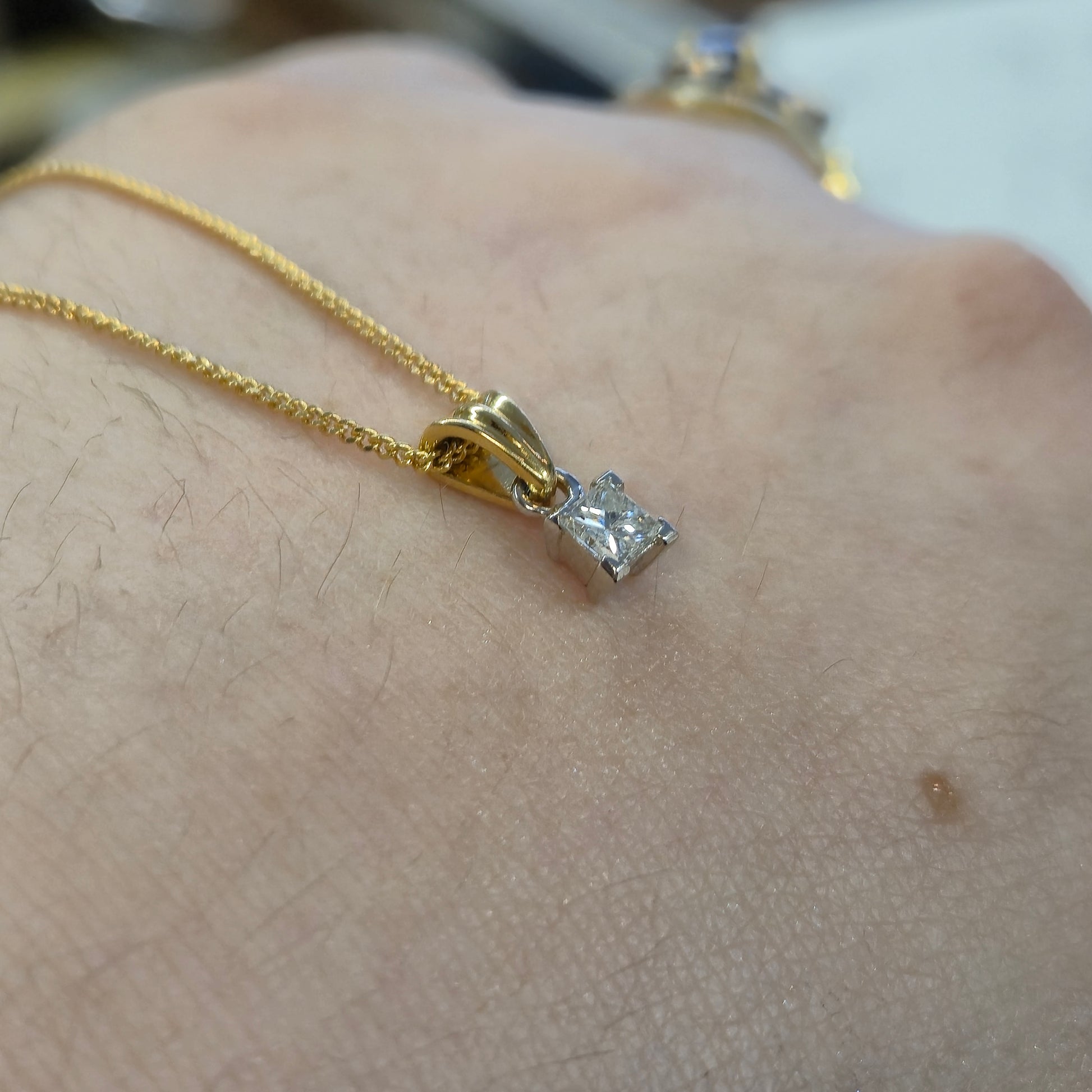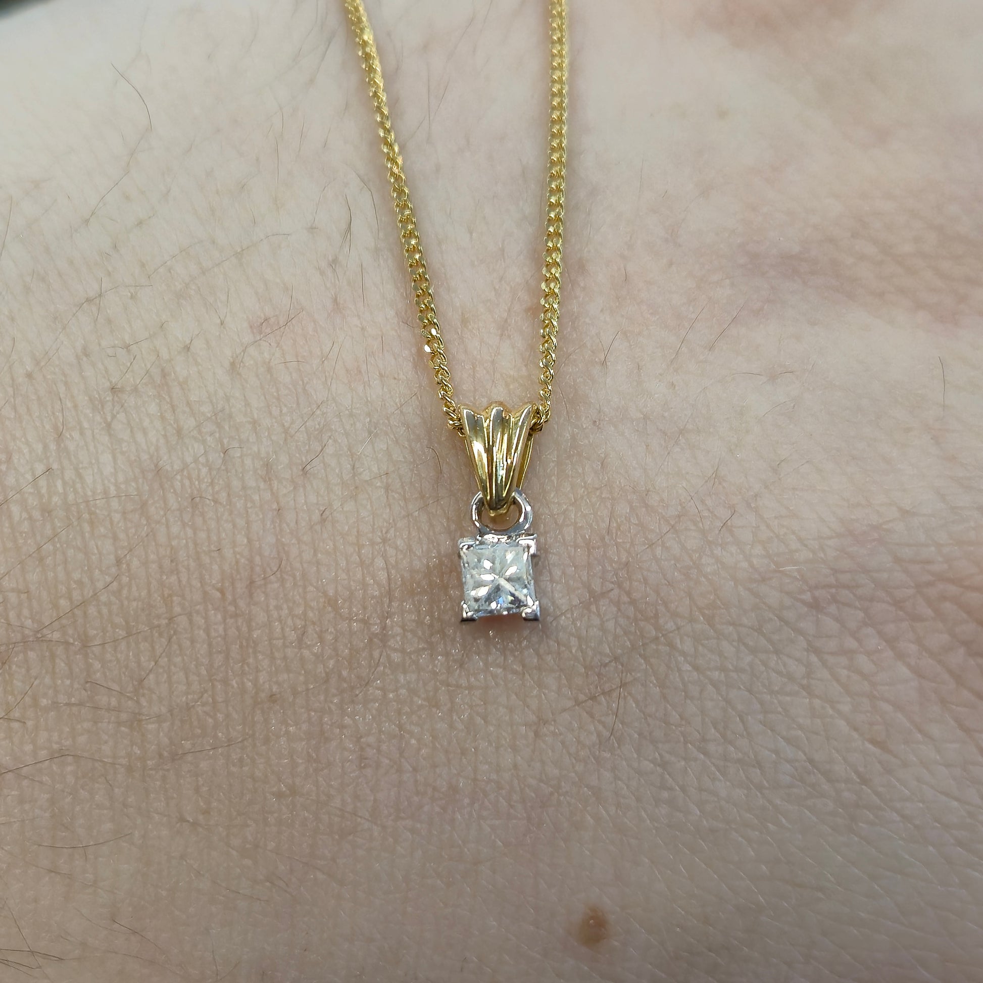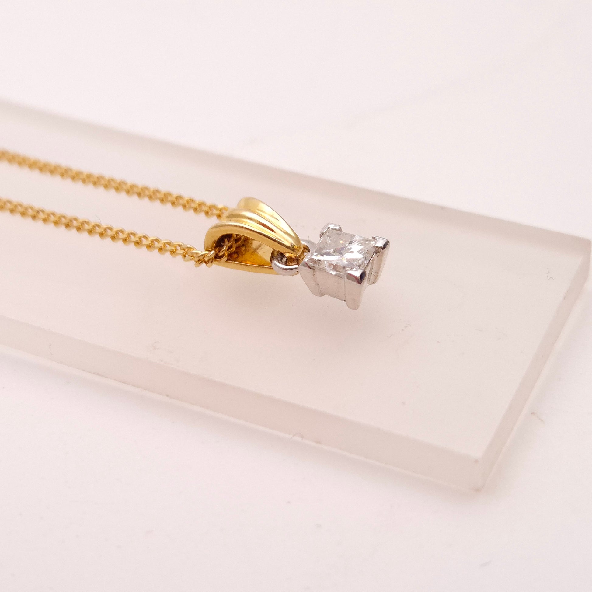 18ct Yellow Gold 0.3ct Princess Cut Solitaire Pendant and Chain