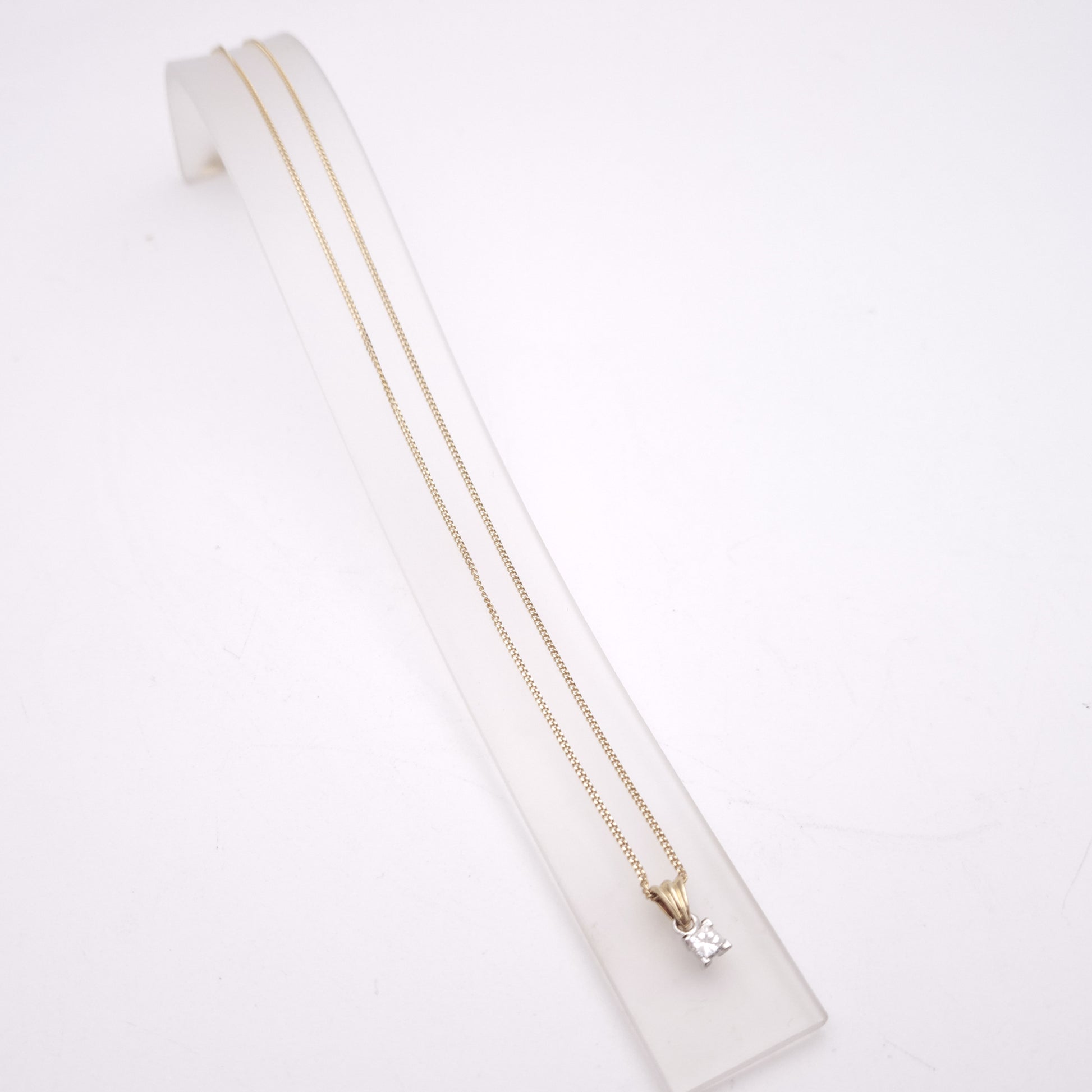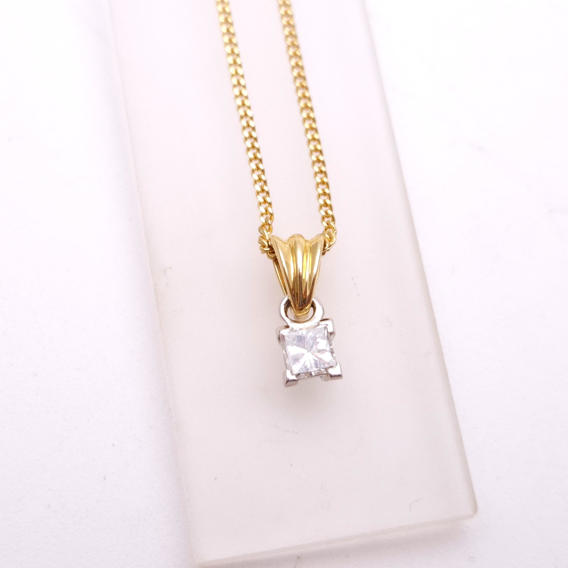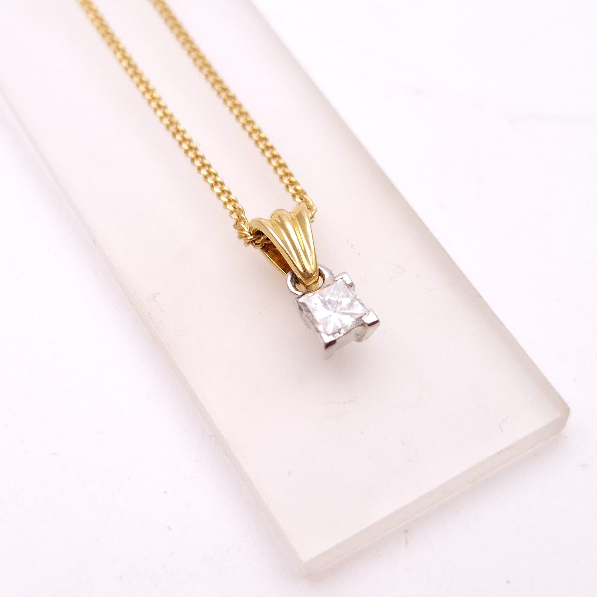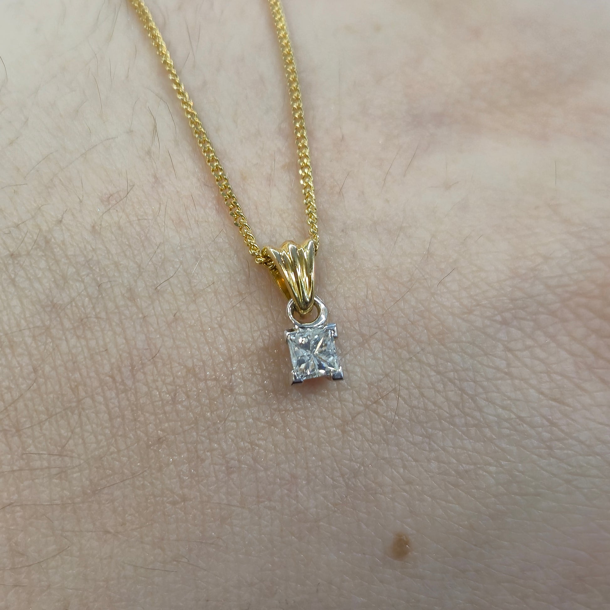 18ct Yellow Gold 0.3ct Princess Cut Solitaire Pendant and Chain