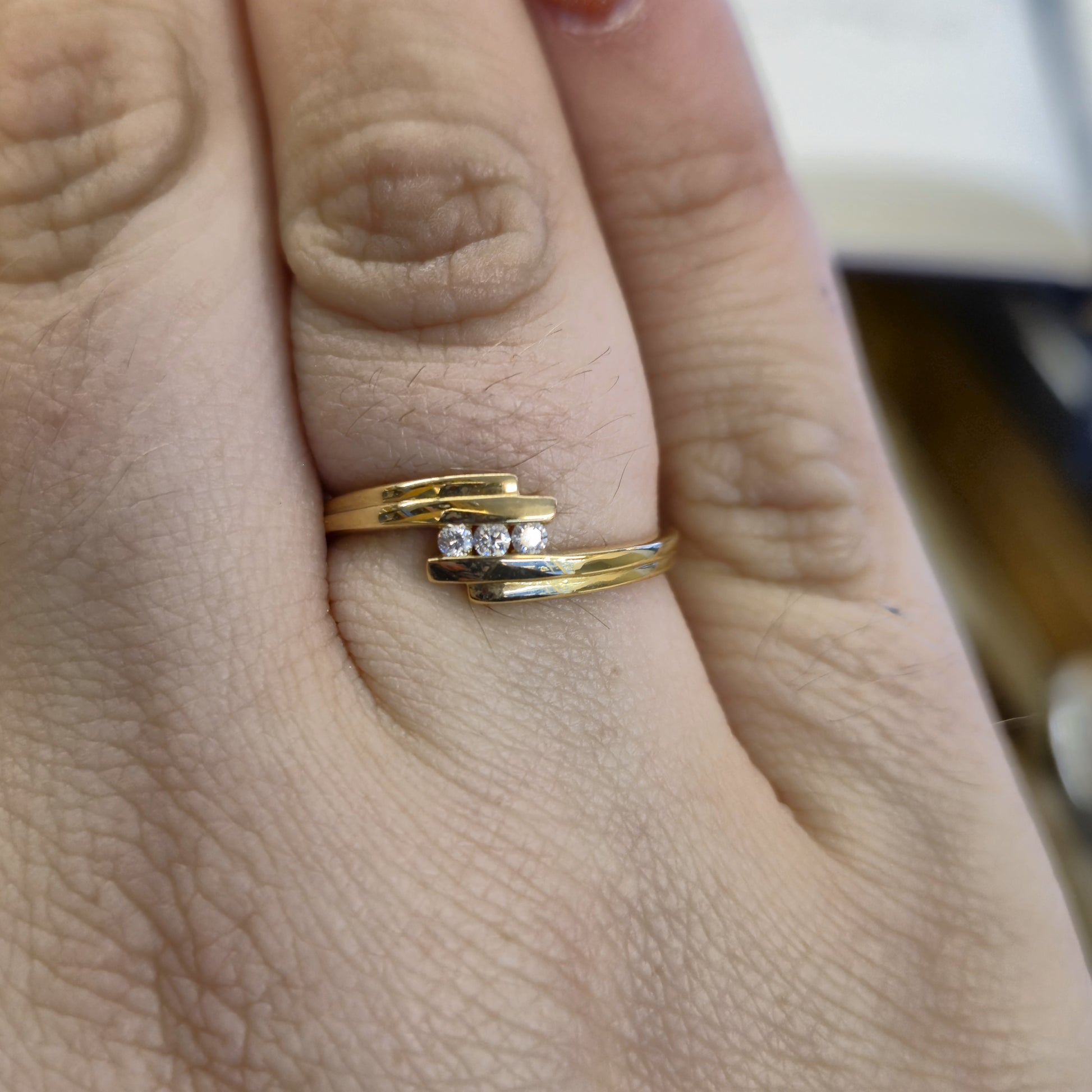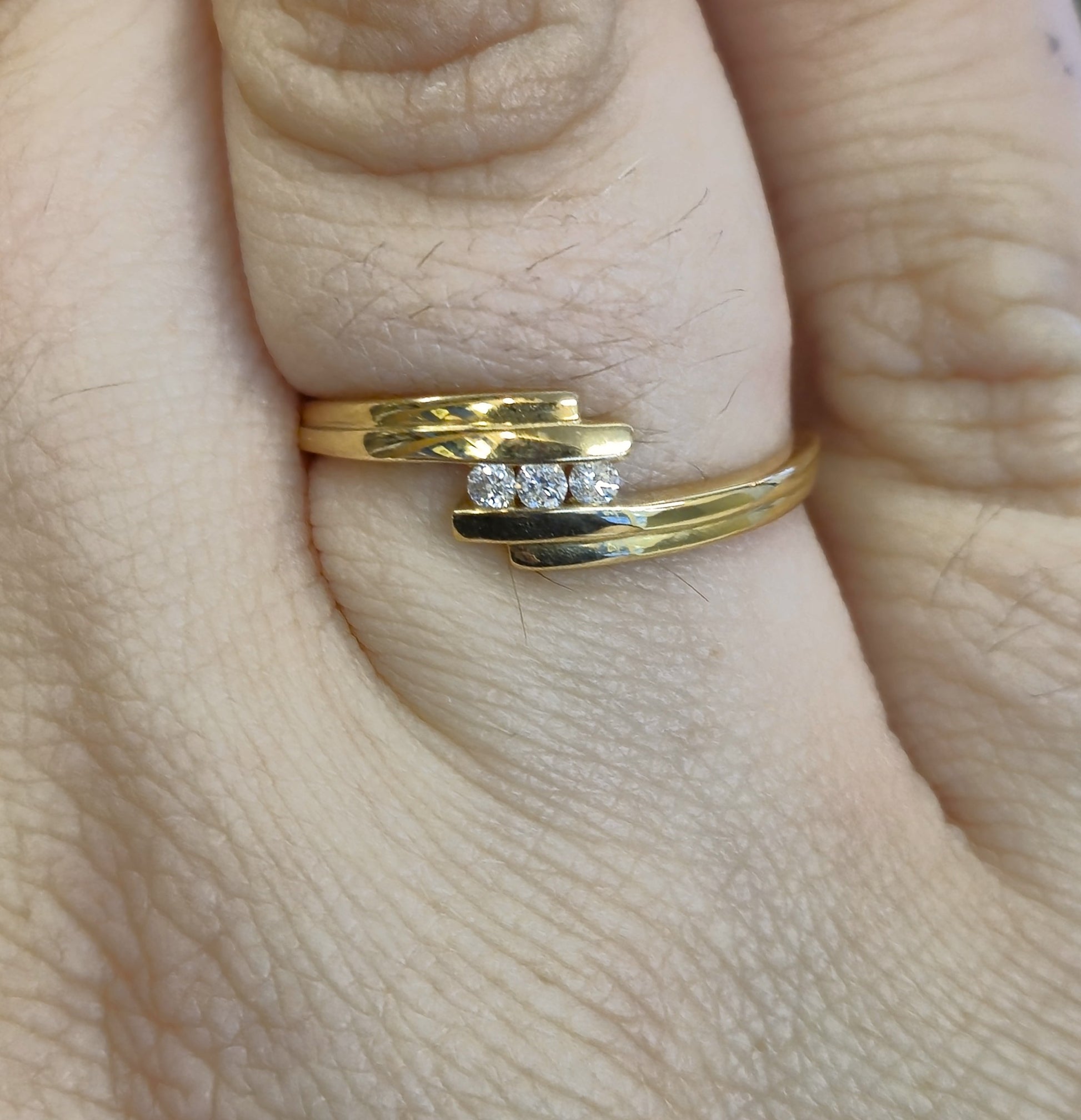 18ct Yellow Gold 3 Stone Diamond Crossover Ring