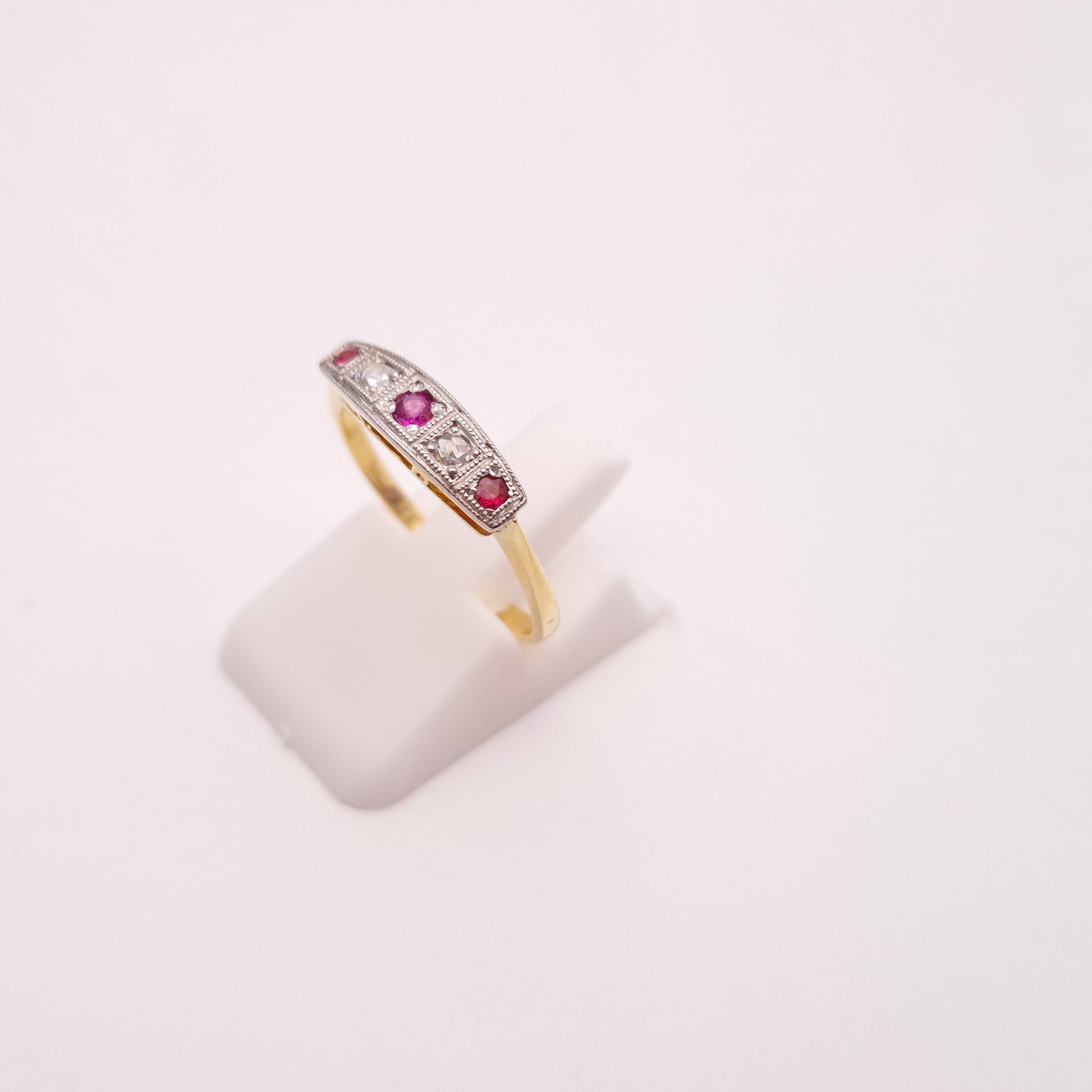 18ct Yellow Gold Antique Ruby and Diamond Five Stone Row Ring