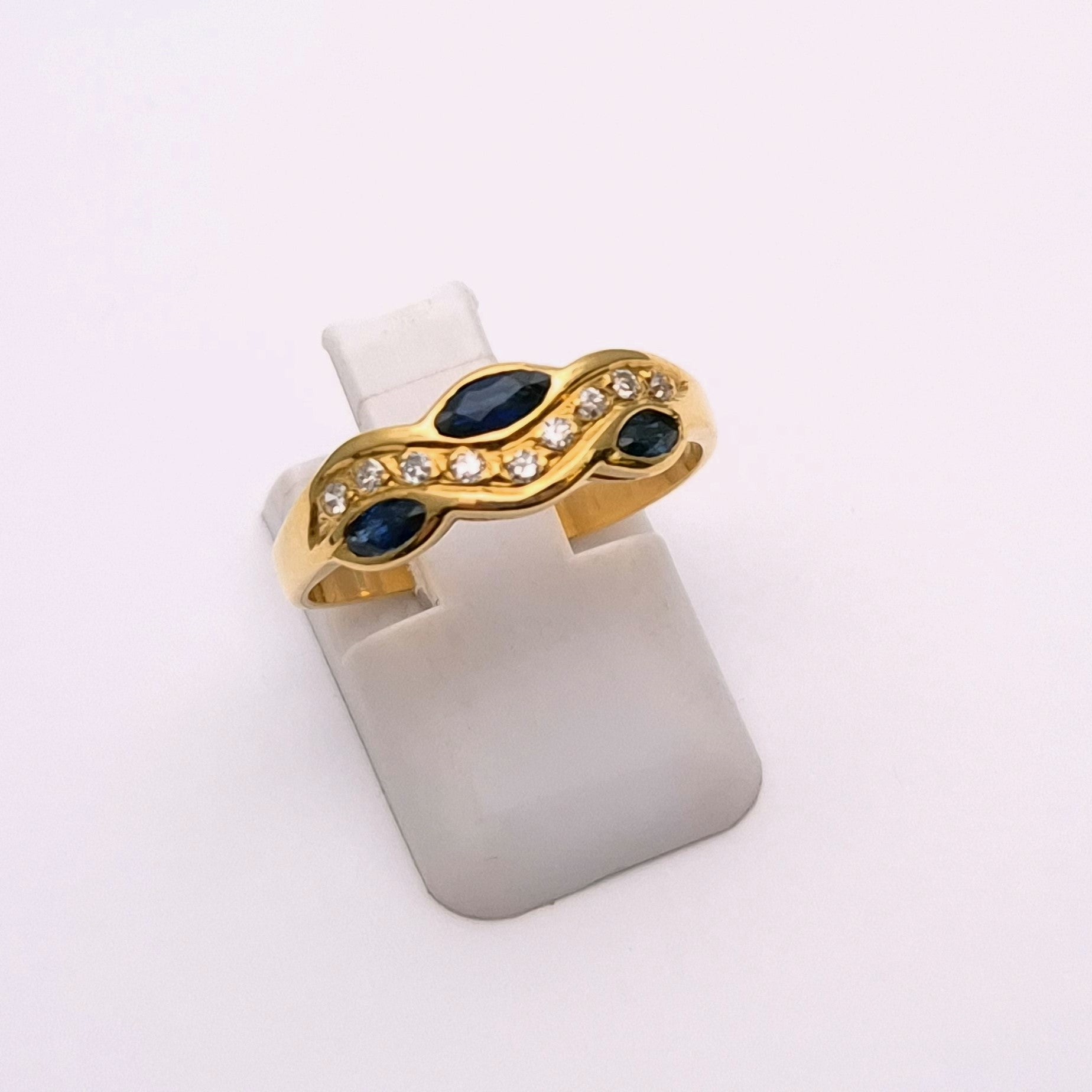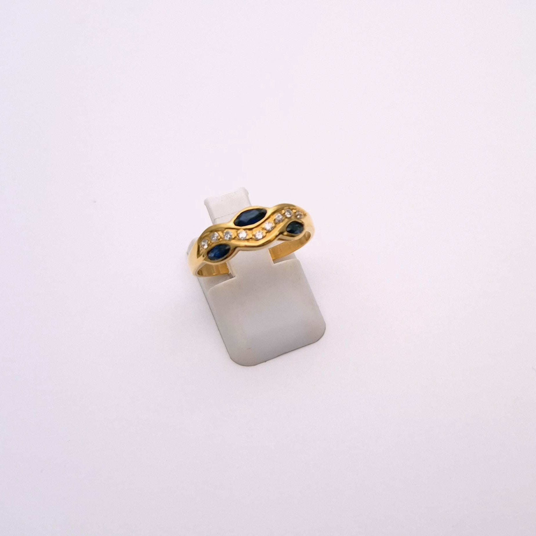 18ct Yellow Gold Sapphire and Diamond Wishbone Wave Ring