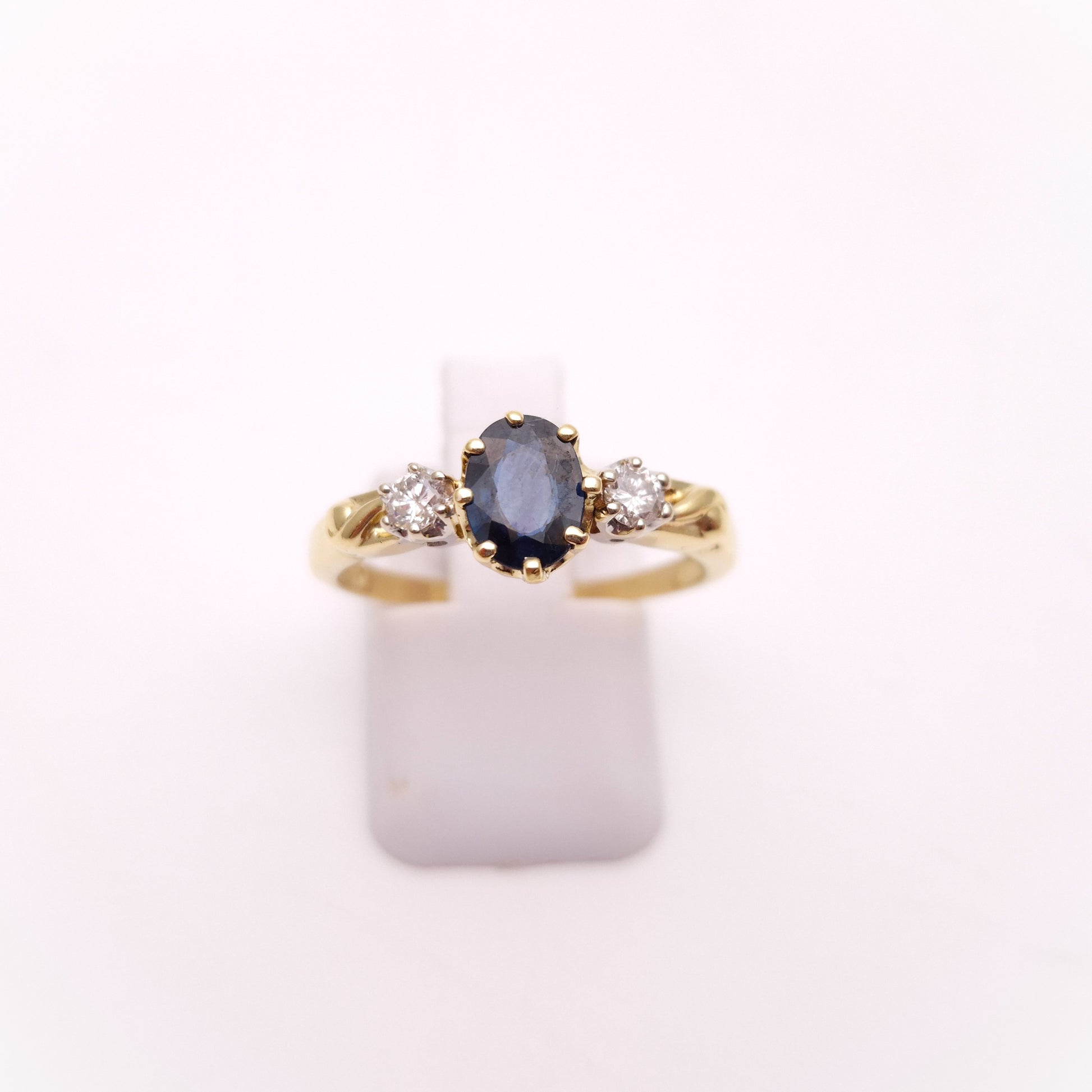 18ct Yellow Gold Vintage Oval Sapphire and Round Diamond Trilogy Ring