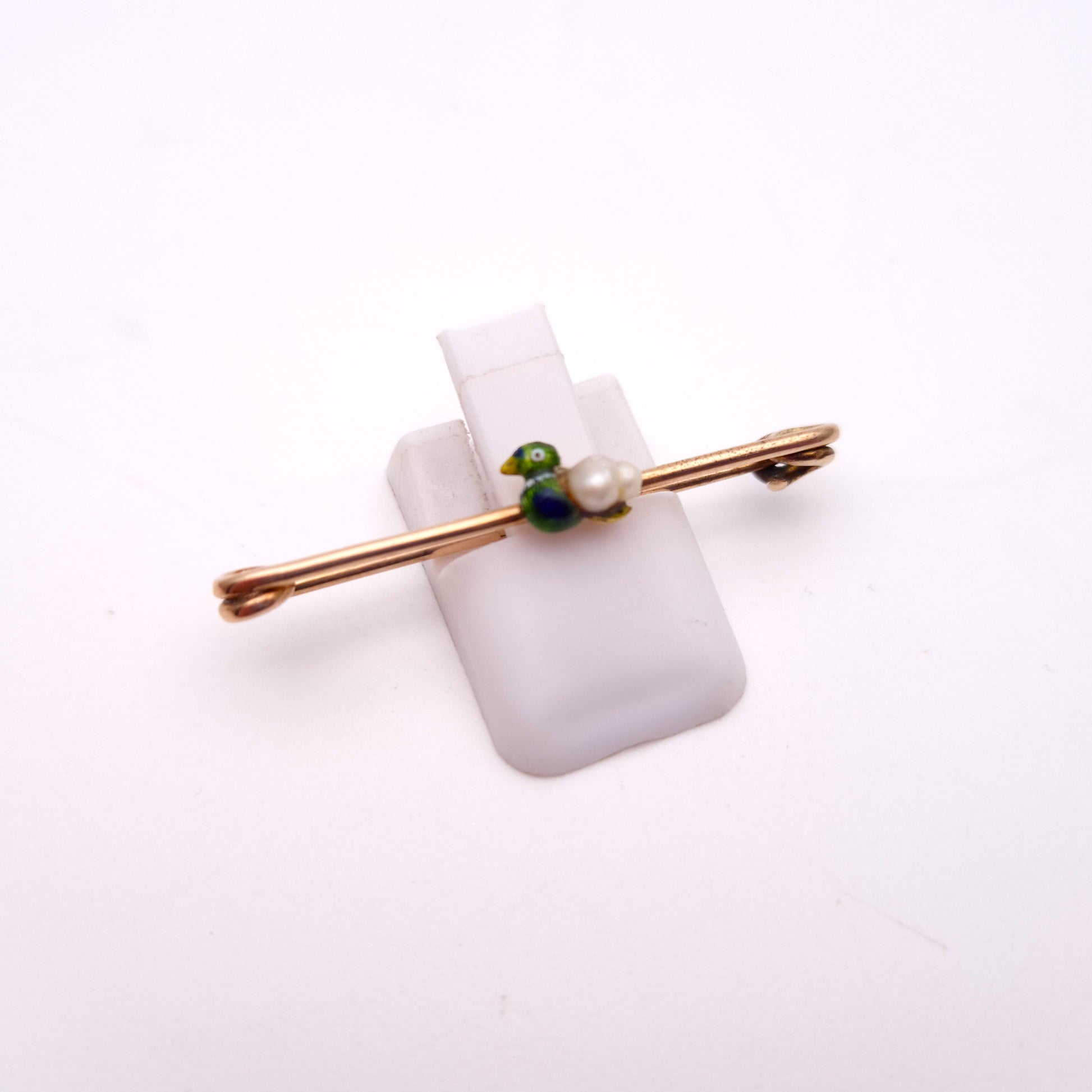 9ct Gold Enamel and Pearl Small Duck Bar Brooch