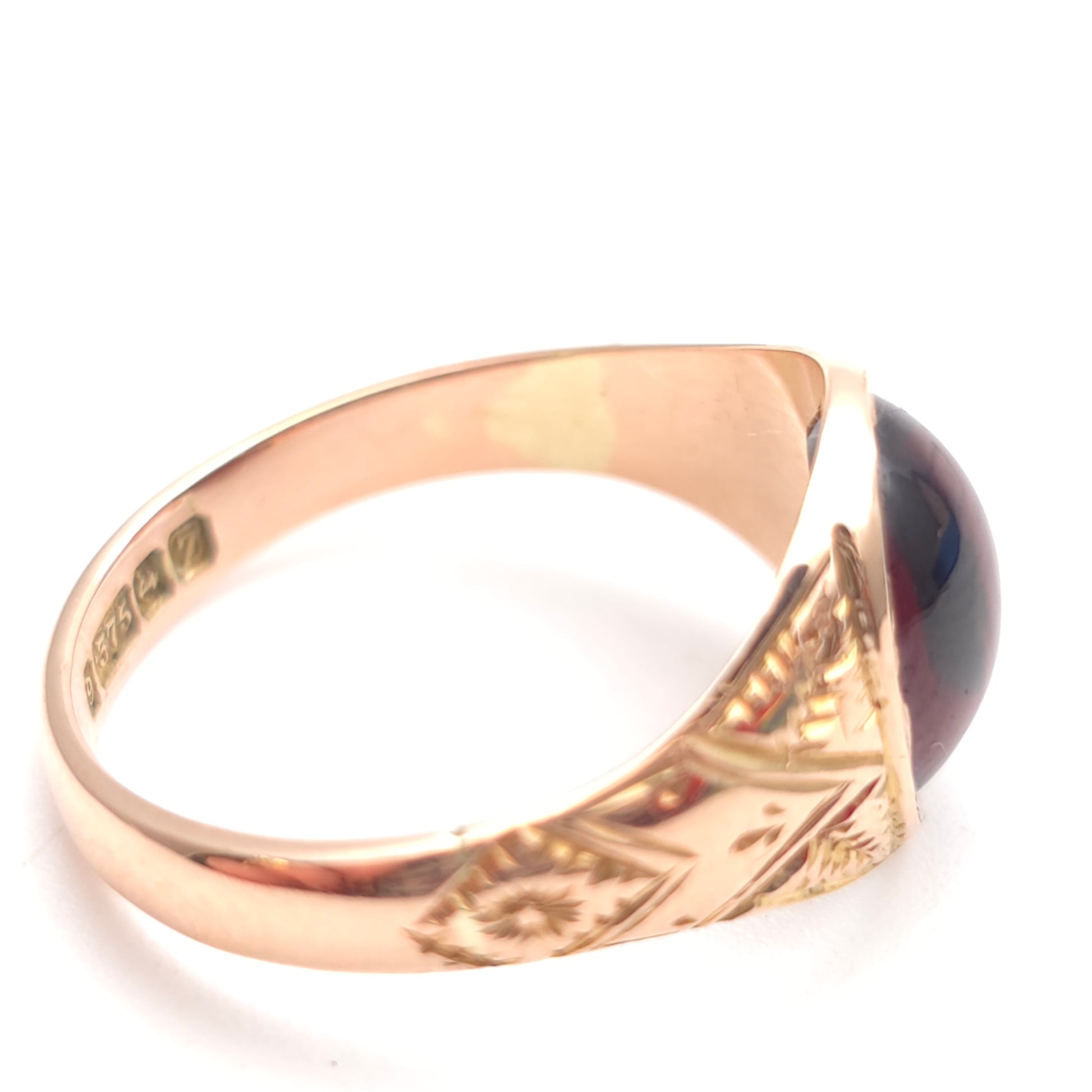 9ct Rose Gold Antique 1920s Garnet Oval Cabochon With Patterned Shoulders