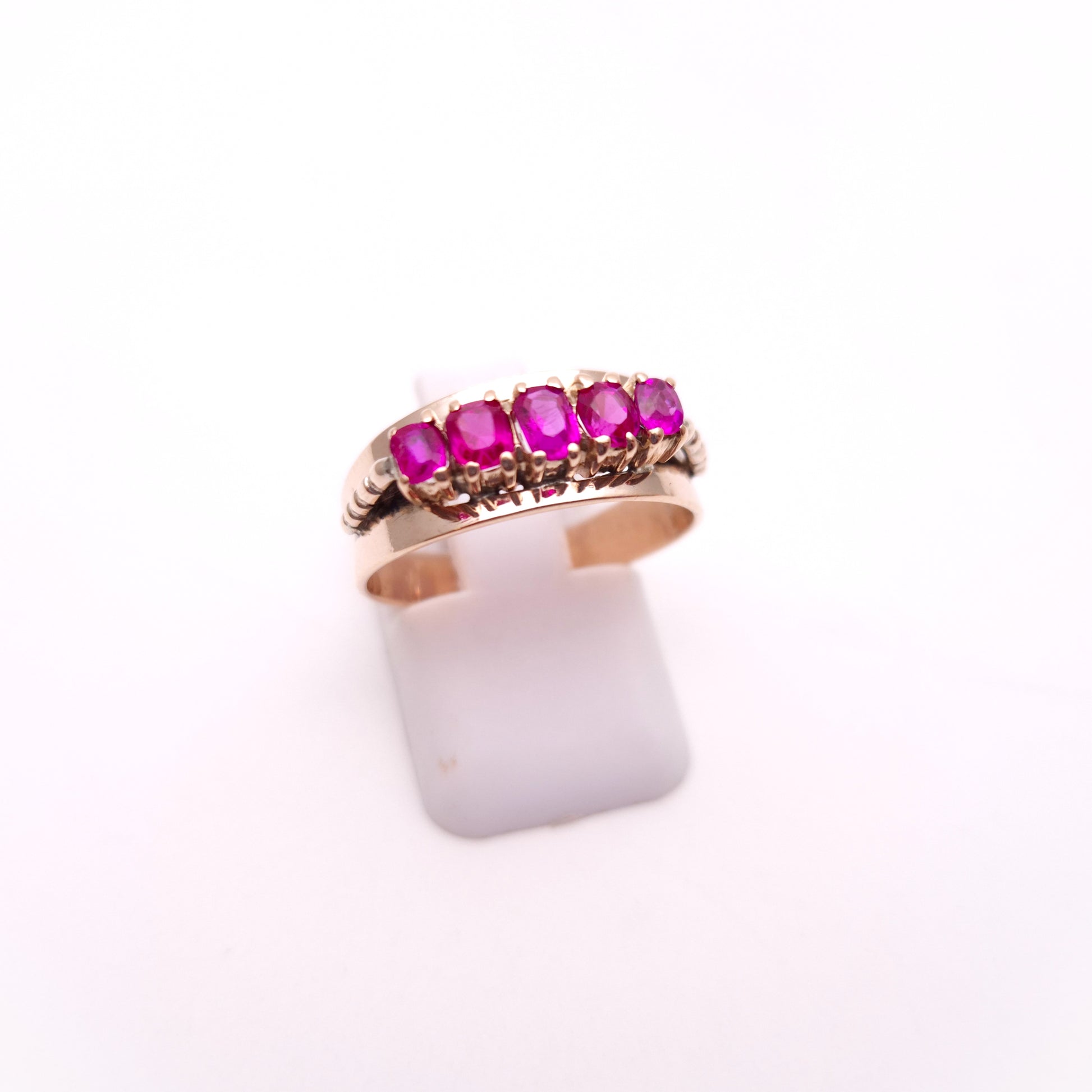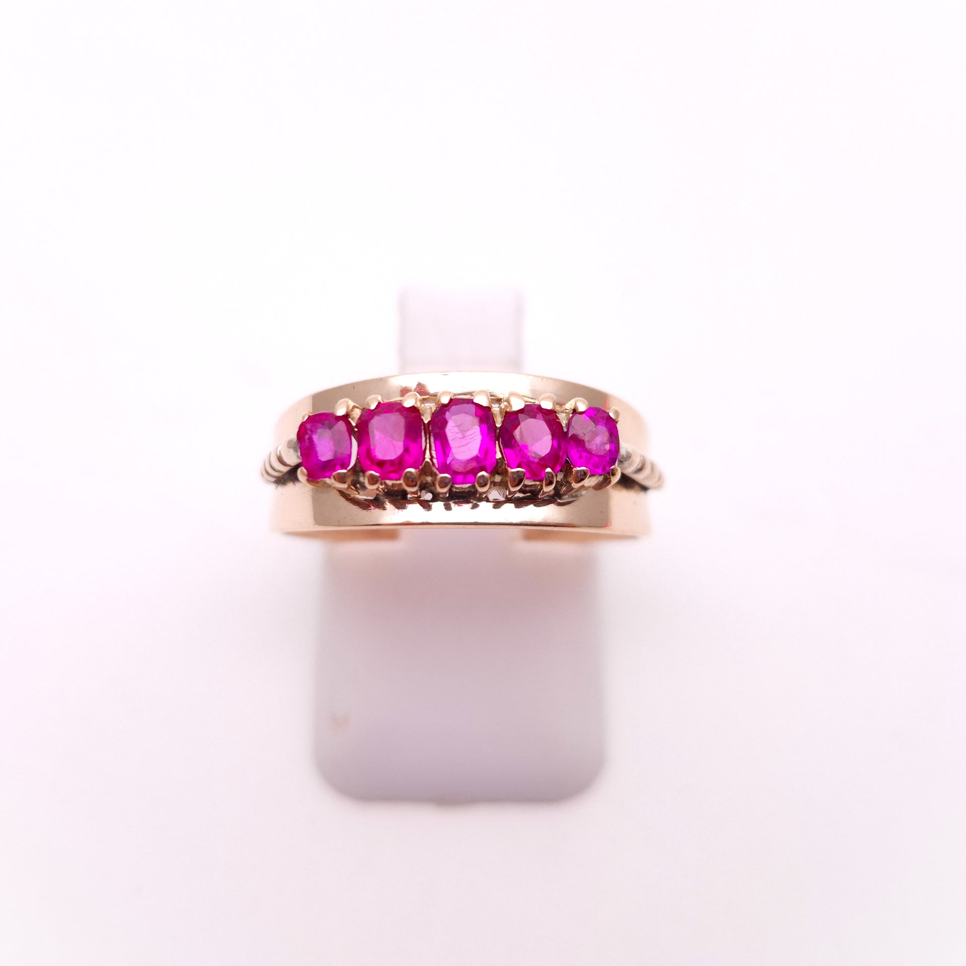 9ct Rose gold Antique 5 Stone Old Cut Ruby Wide Band Ring