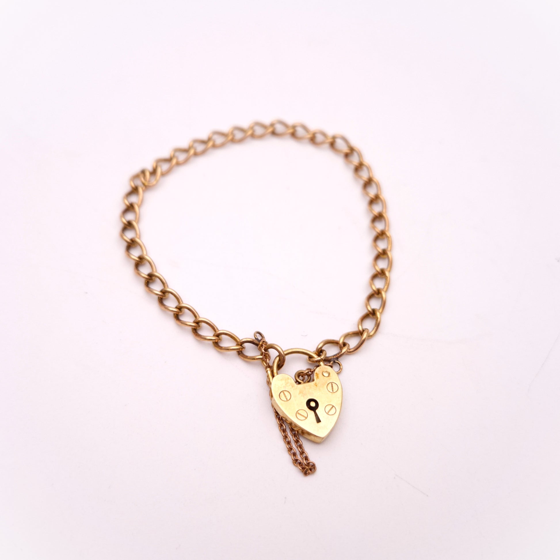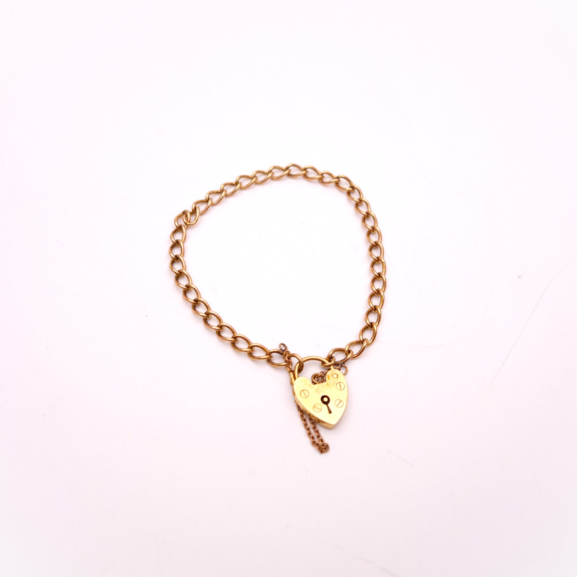 9ct Rose Gold Vintage Heart Padlock Charm Style Bracelet