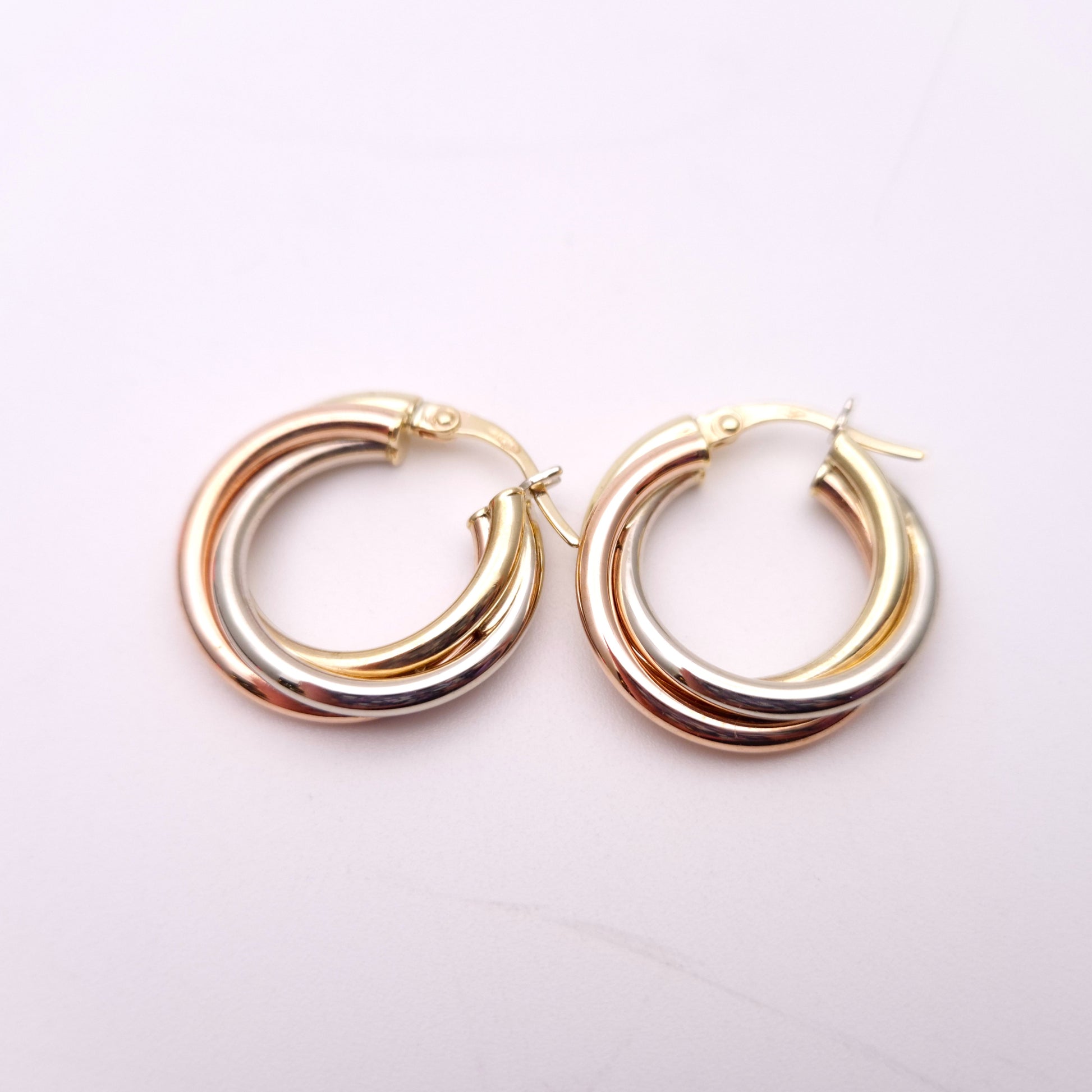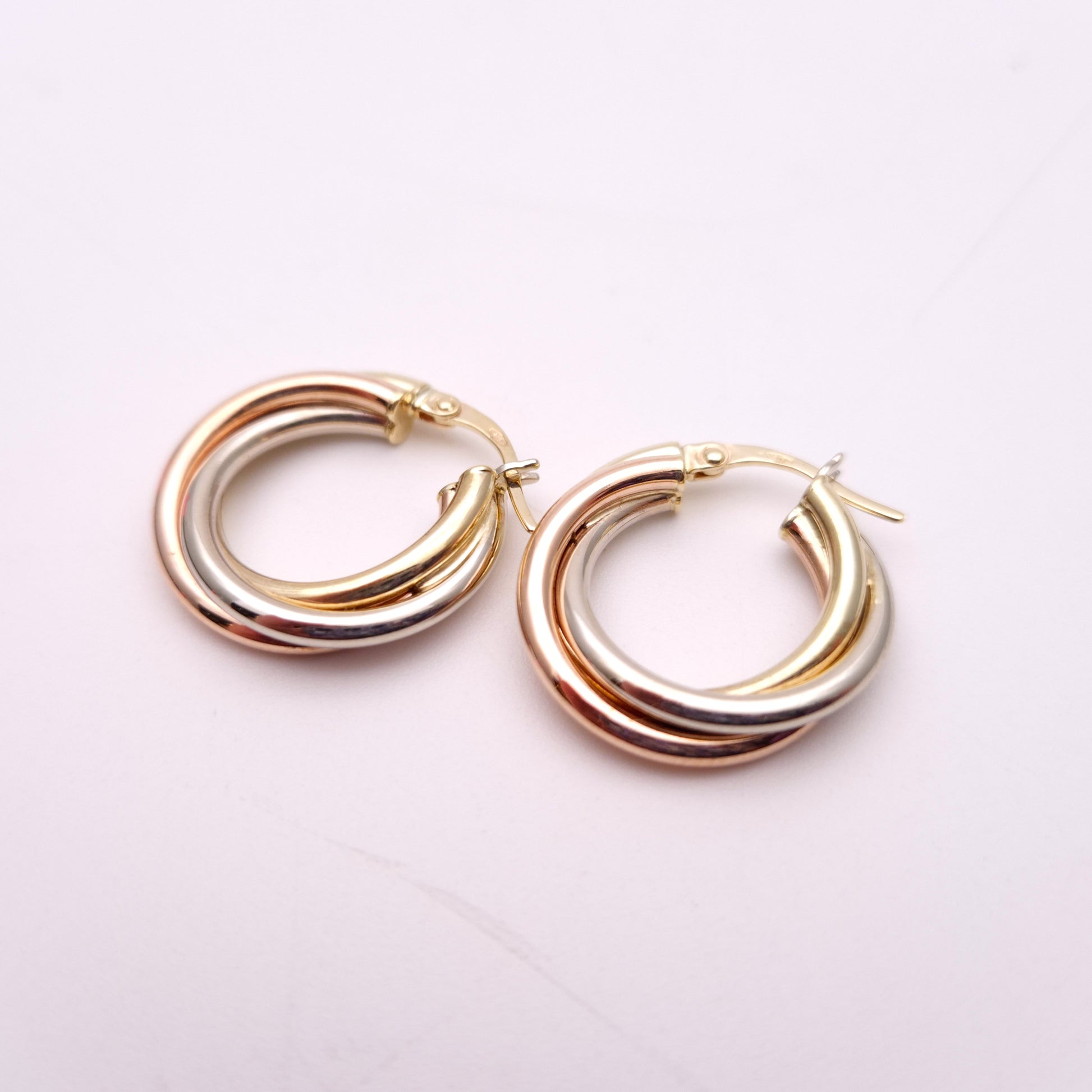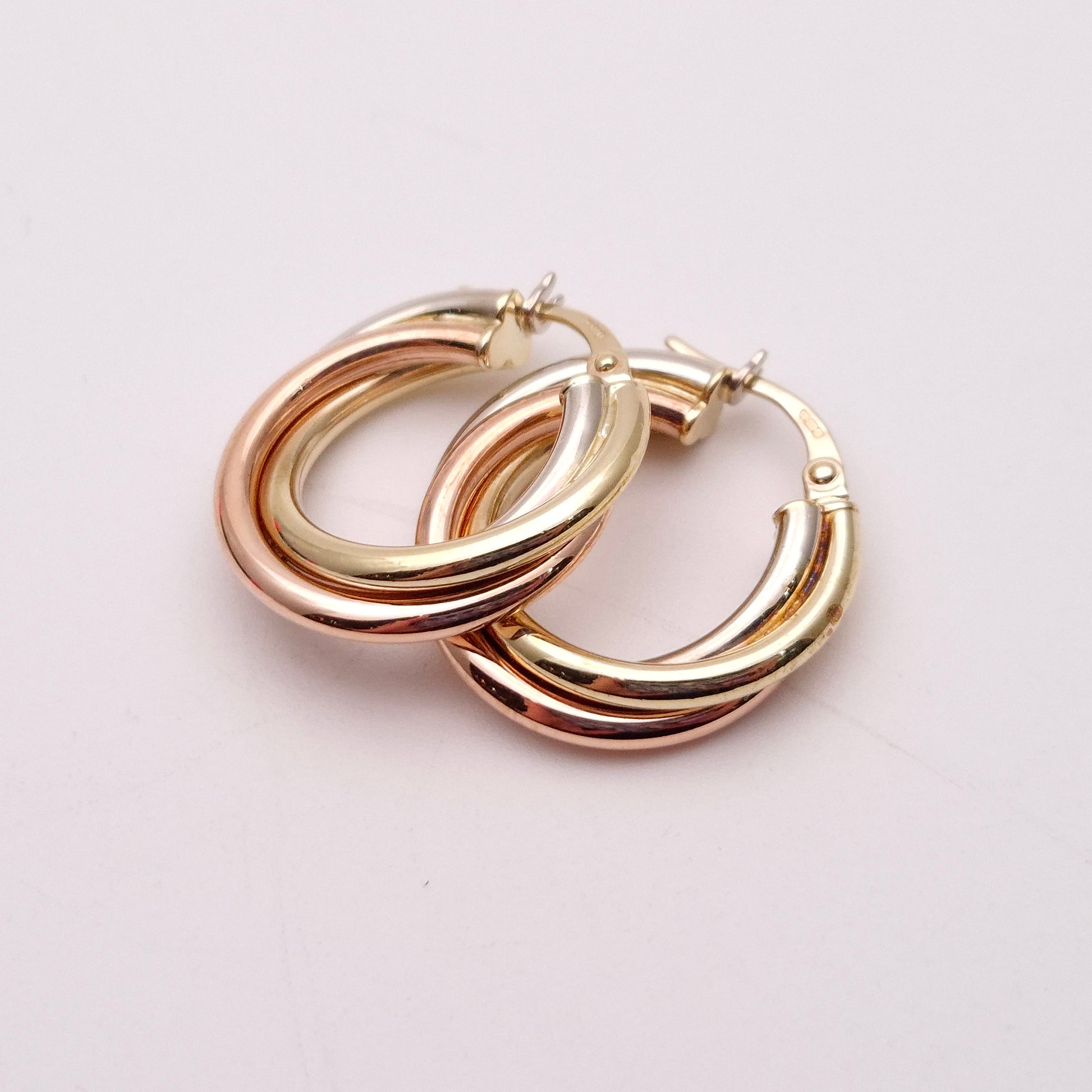 9ct Tricolour Gold Twisted Round Creole Hoop Earrings
