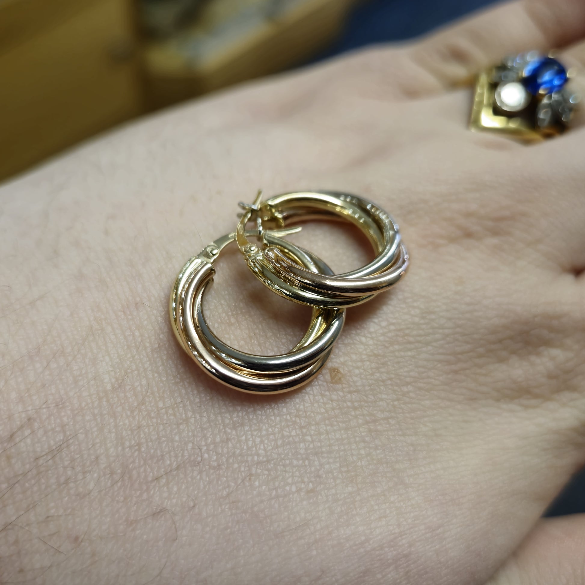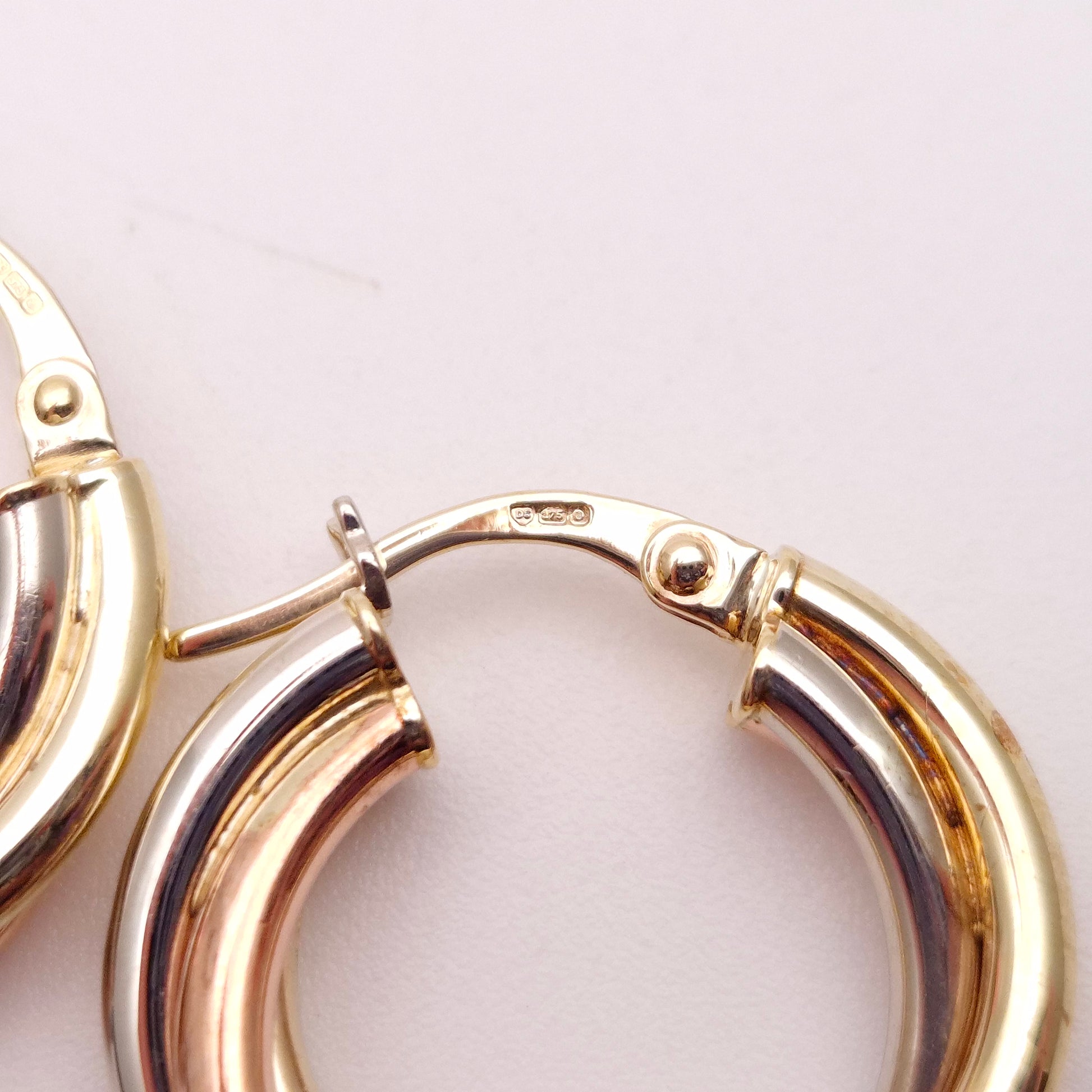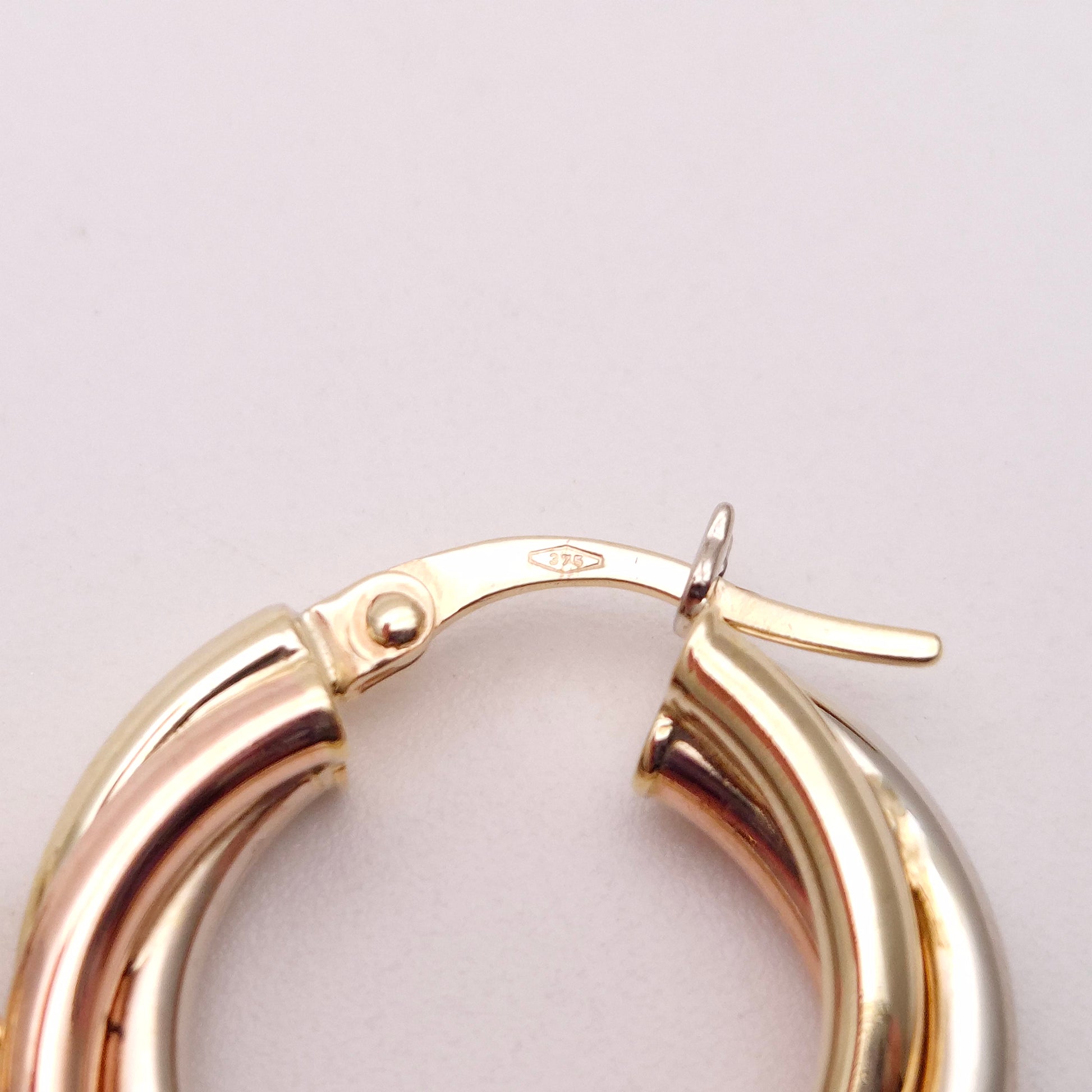9ct Tricolour Gold Twisted Round Creole Hoop Earrings