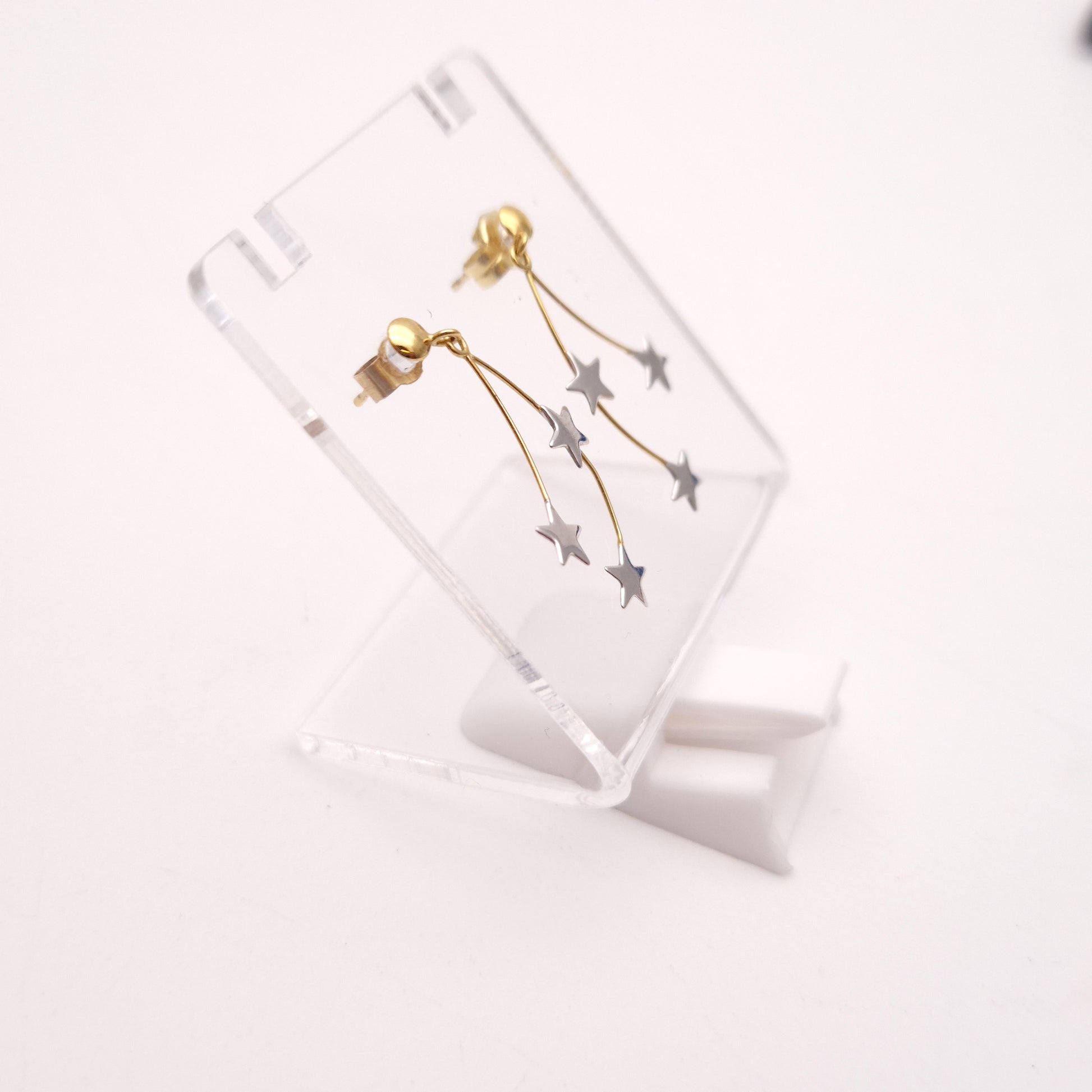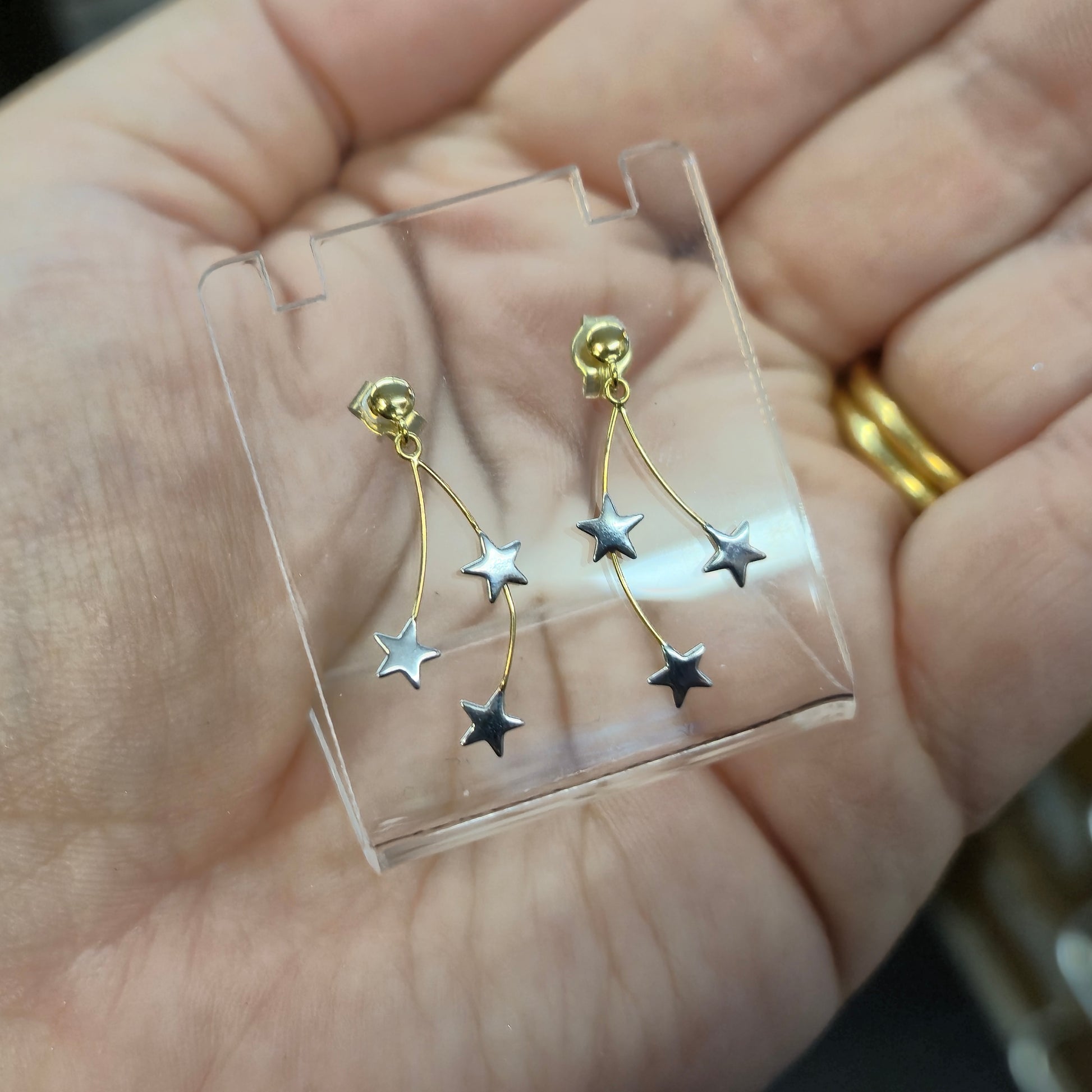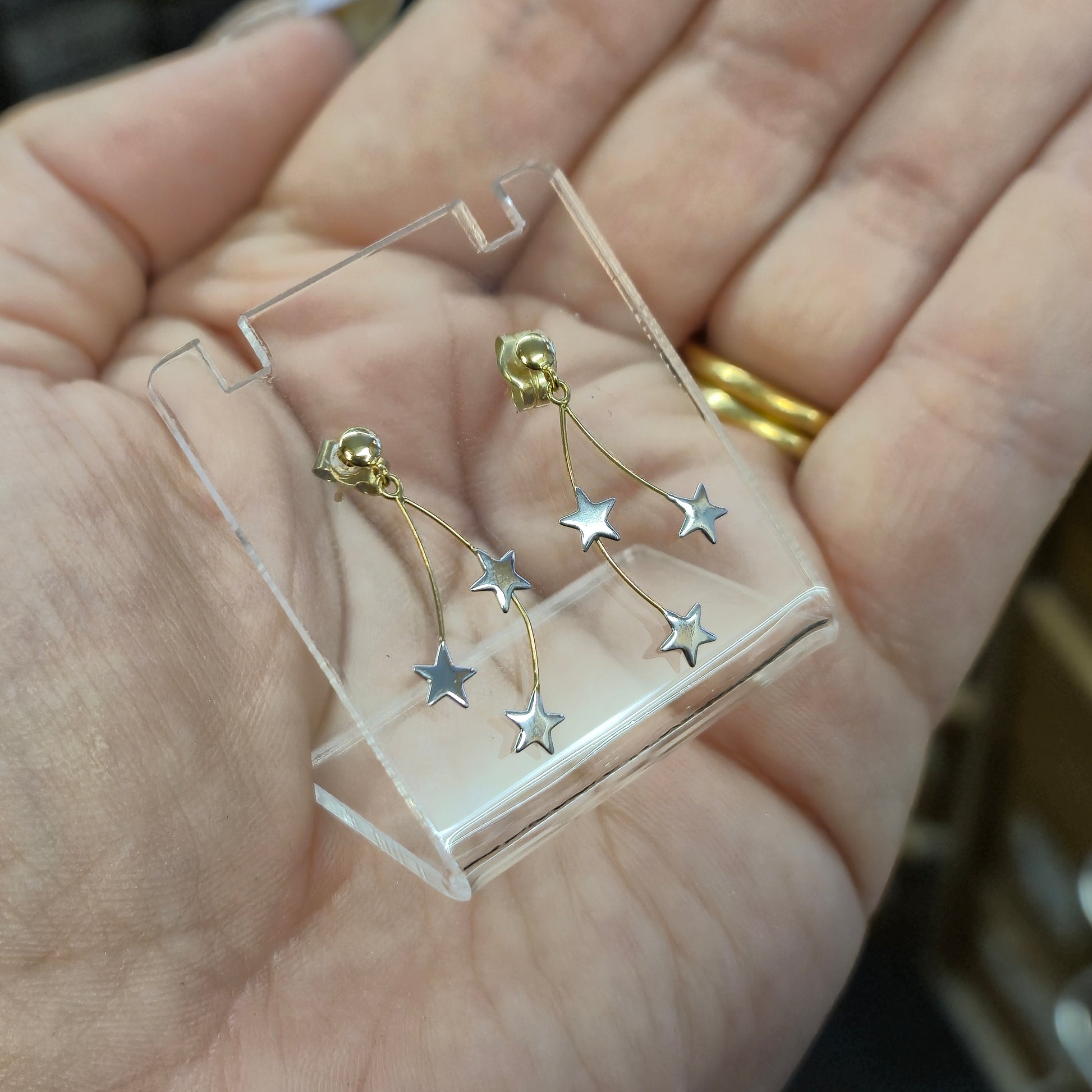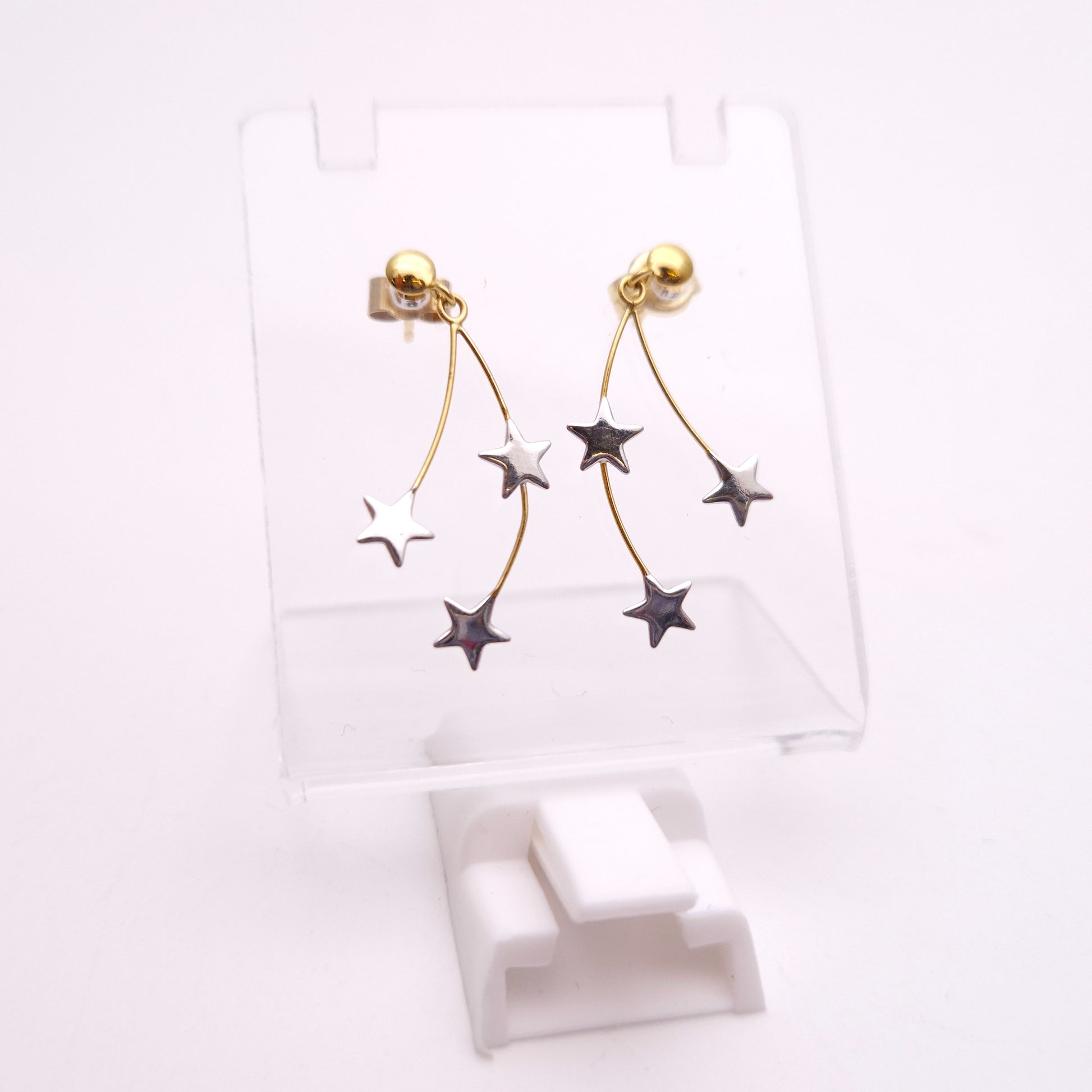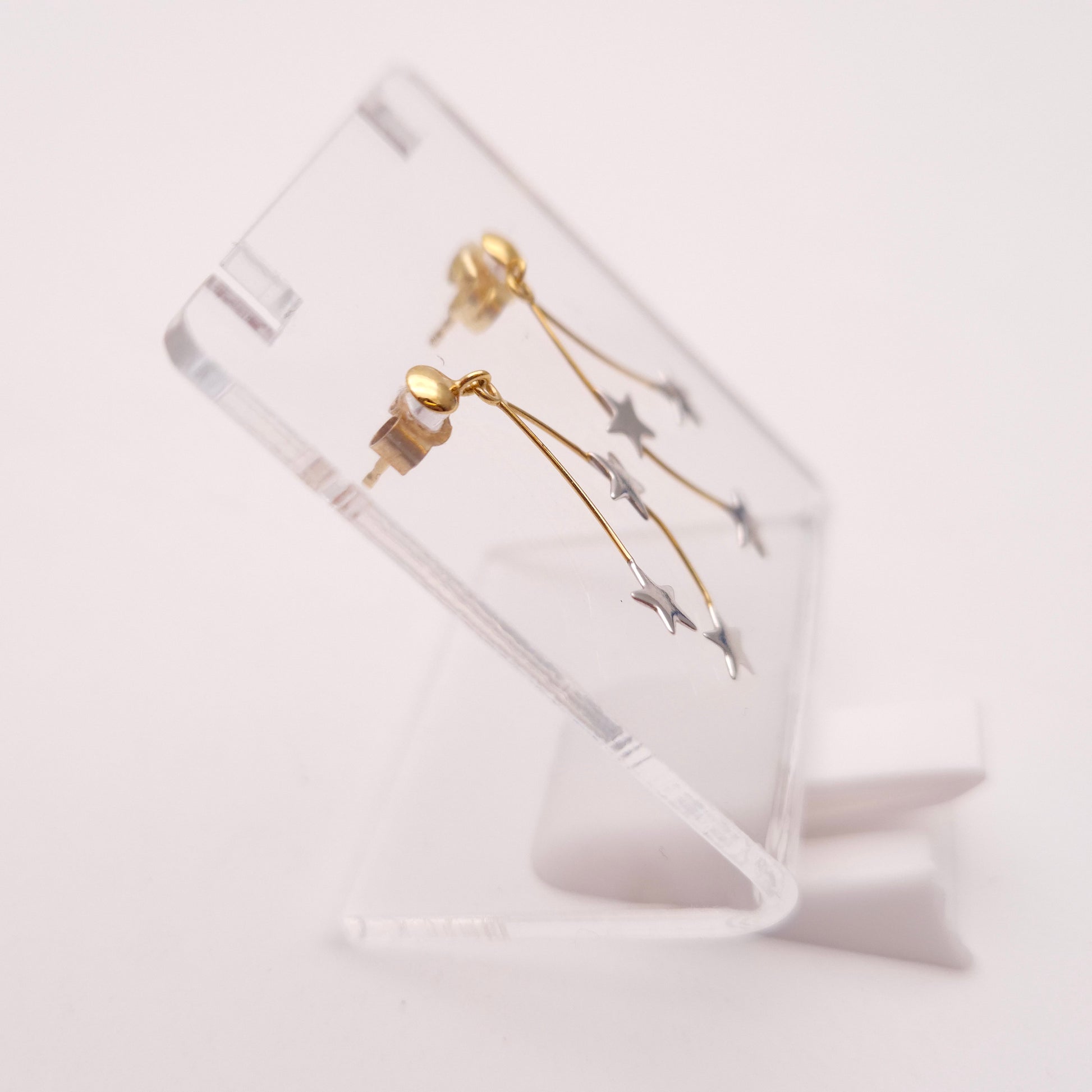 9ct Two Tone Lightweight Star Trio Drop Earrings