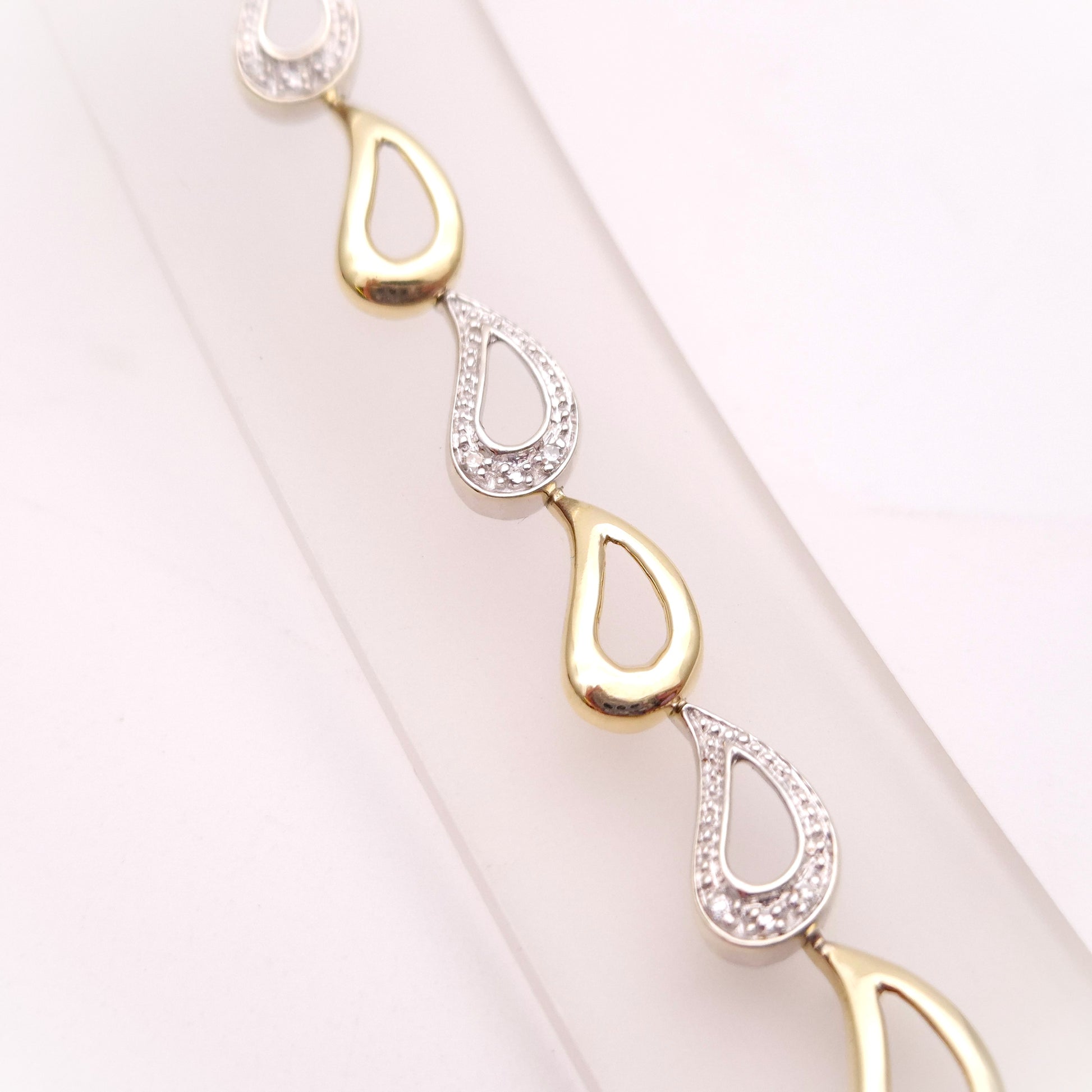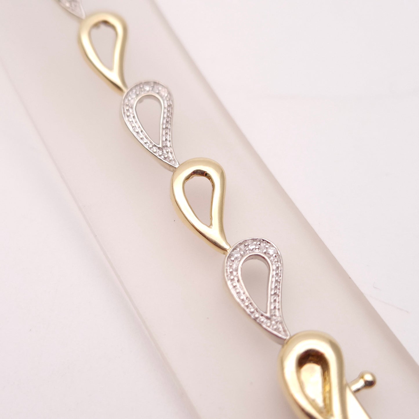 9ct Two-Tone Teardrop Pear Shaped Open Link Diamond Set Bracelet