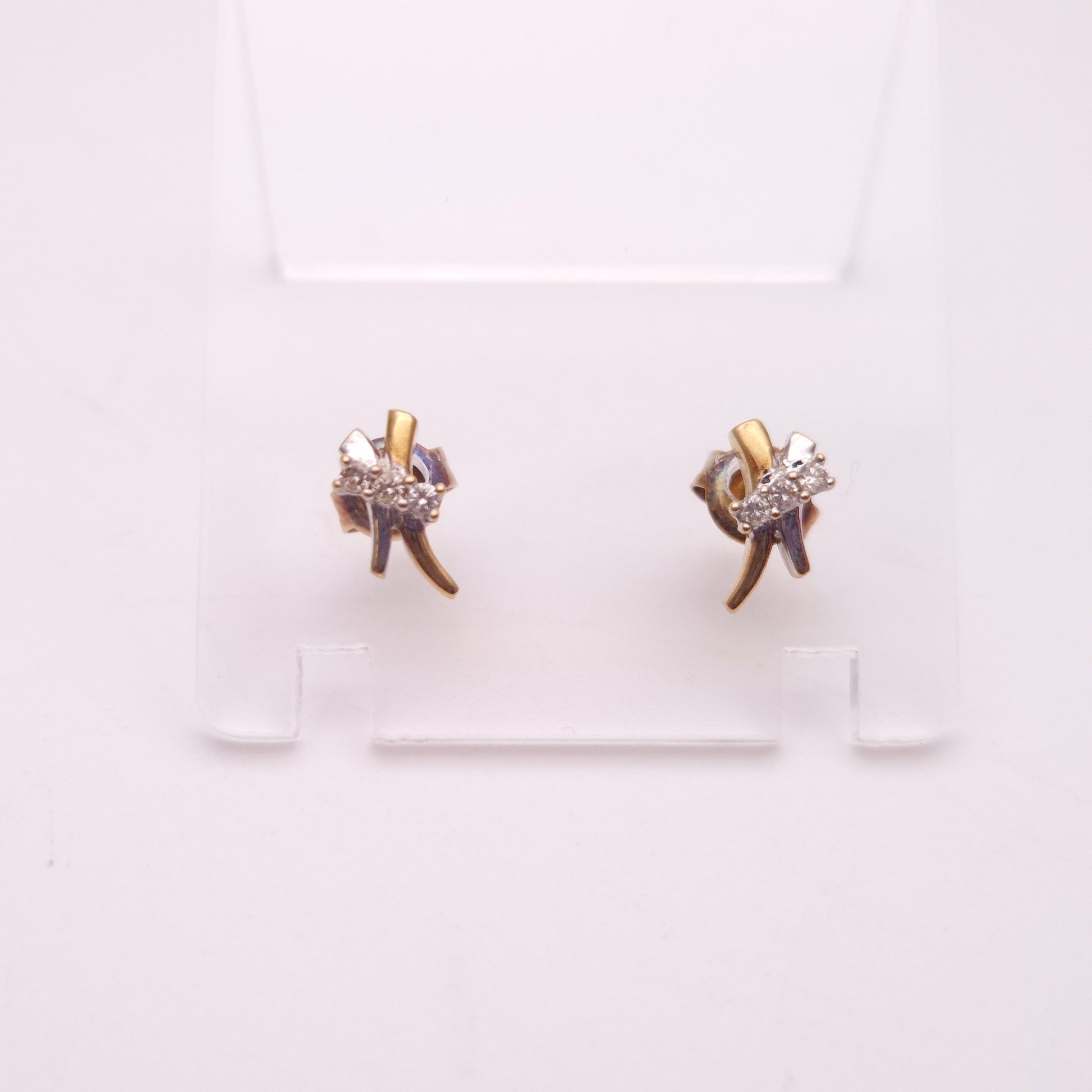 This stylish pair of stud earrings offers a sophisticated blend of gold tones and brilliant diamond sparkle in a chic, abstract design. They are crafted in 9ct Two-Tone Gold, featuring both polished rose tone gold and cool white gold.
