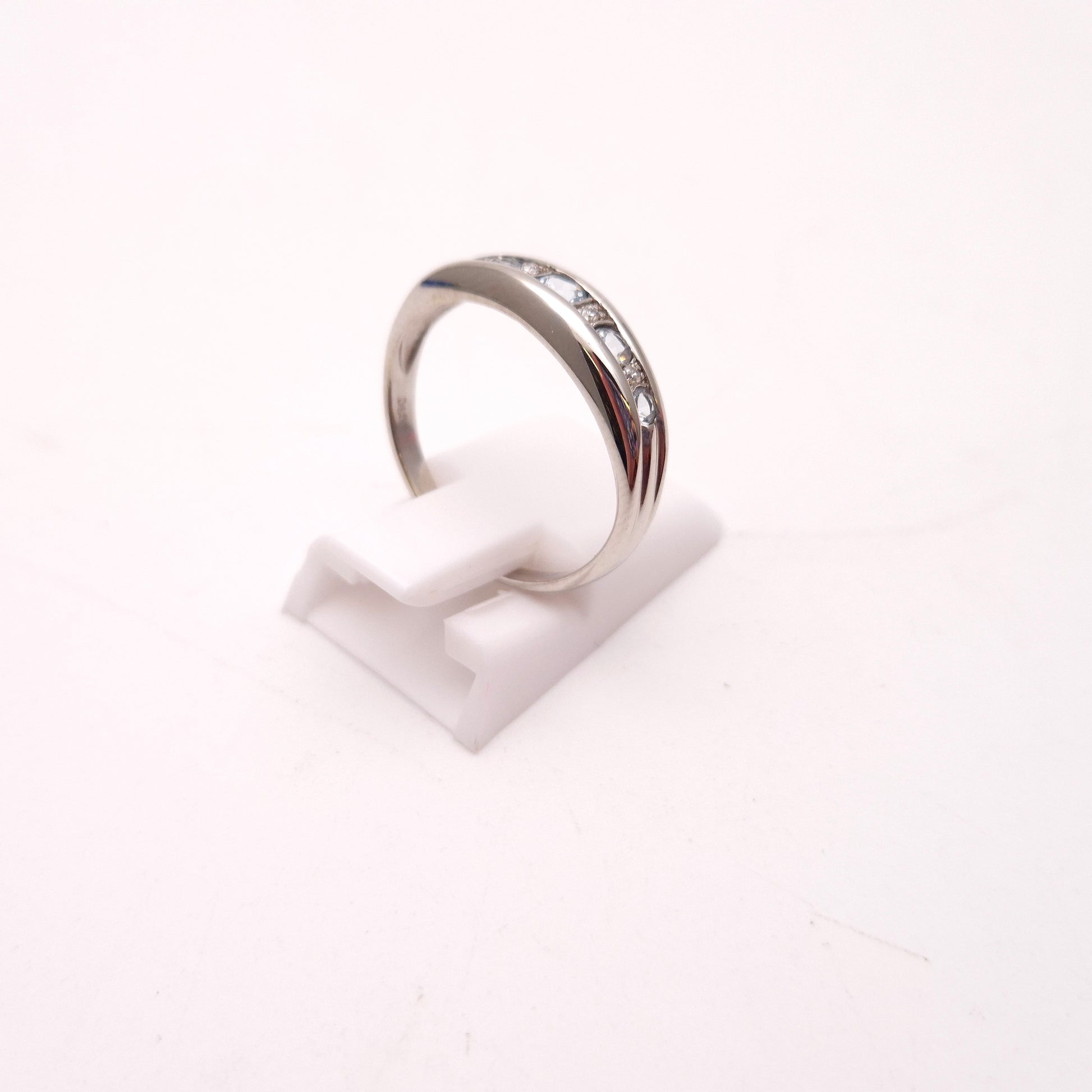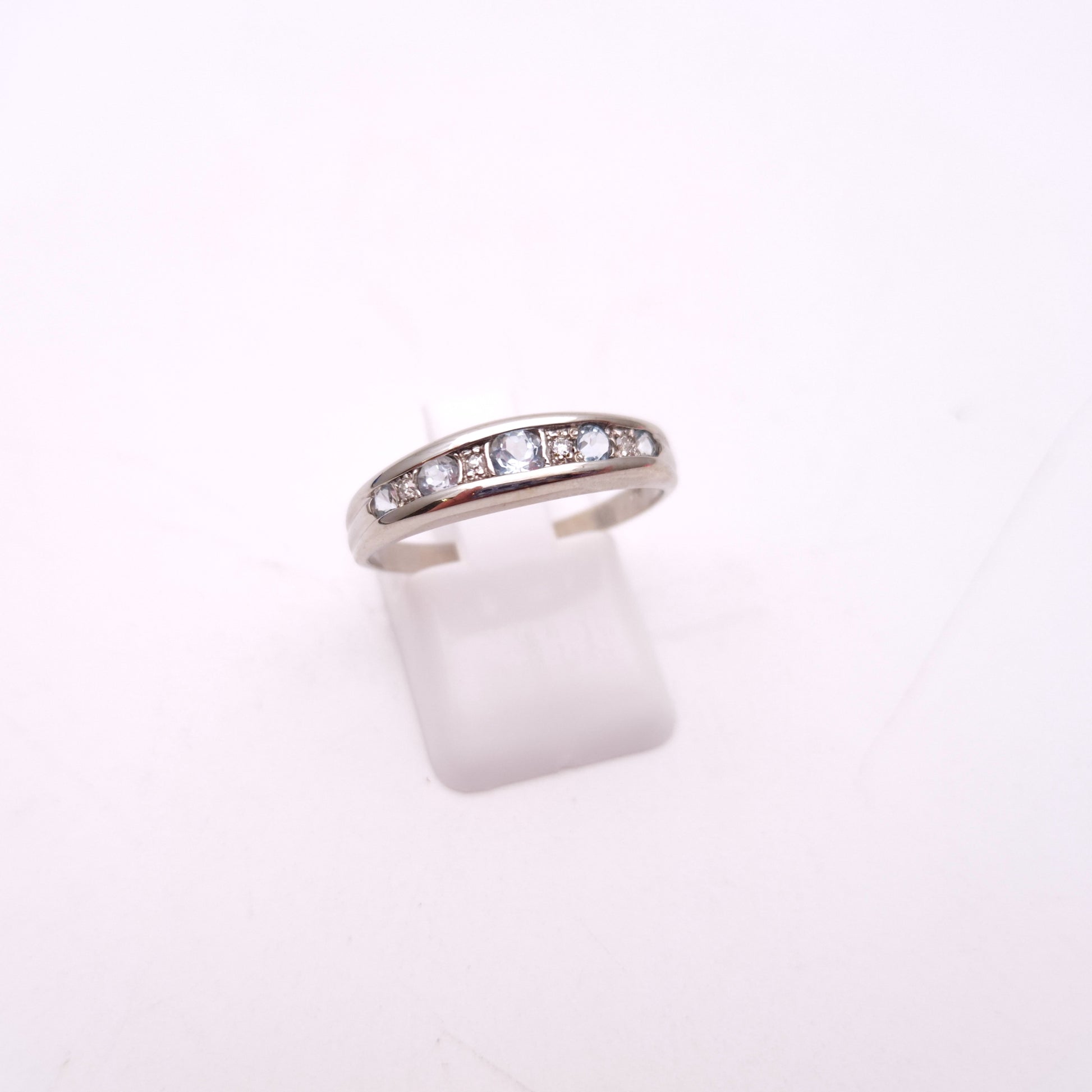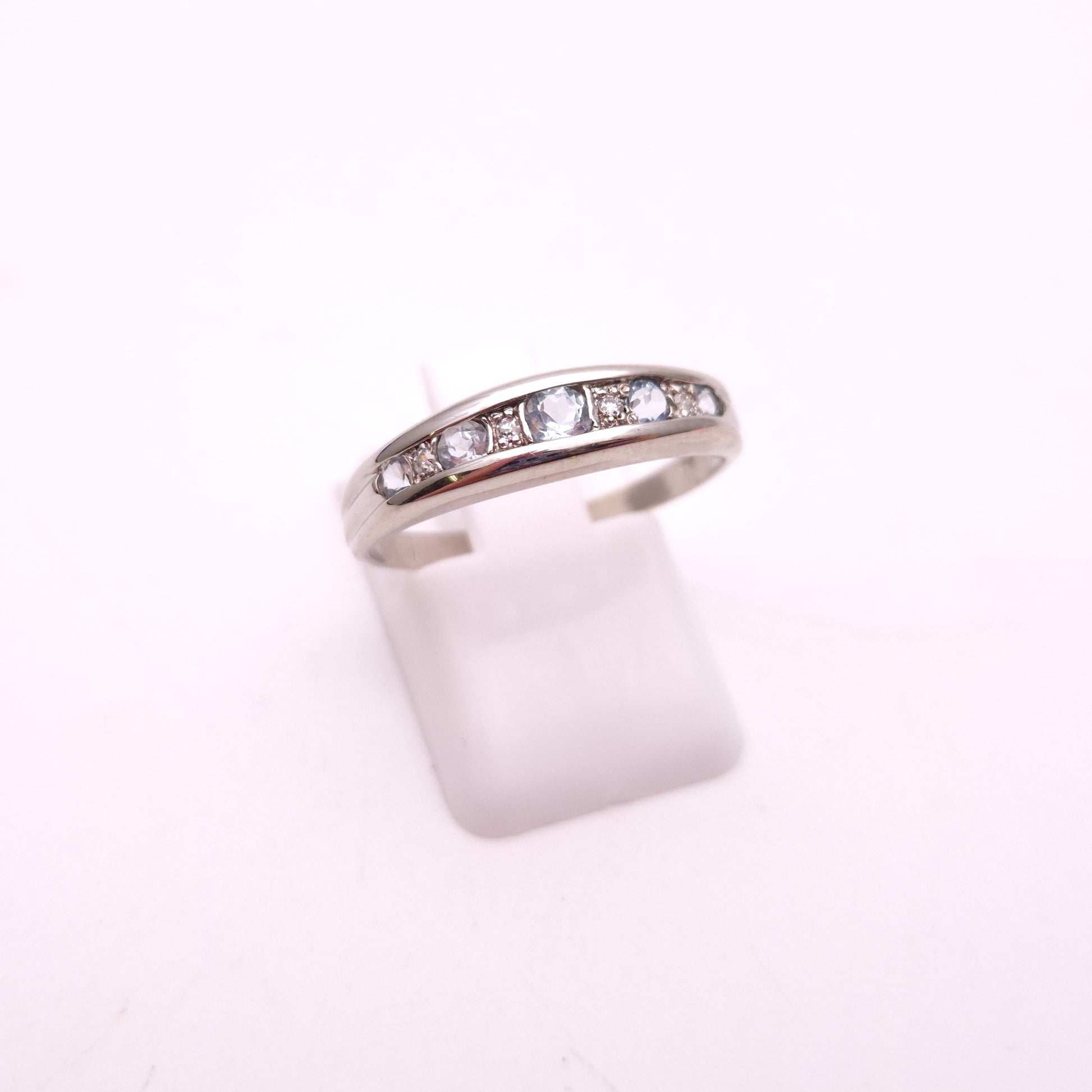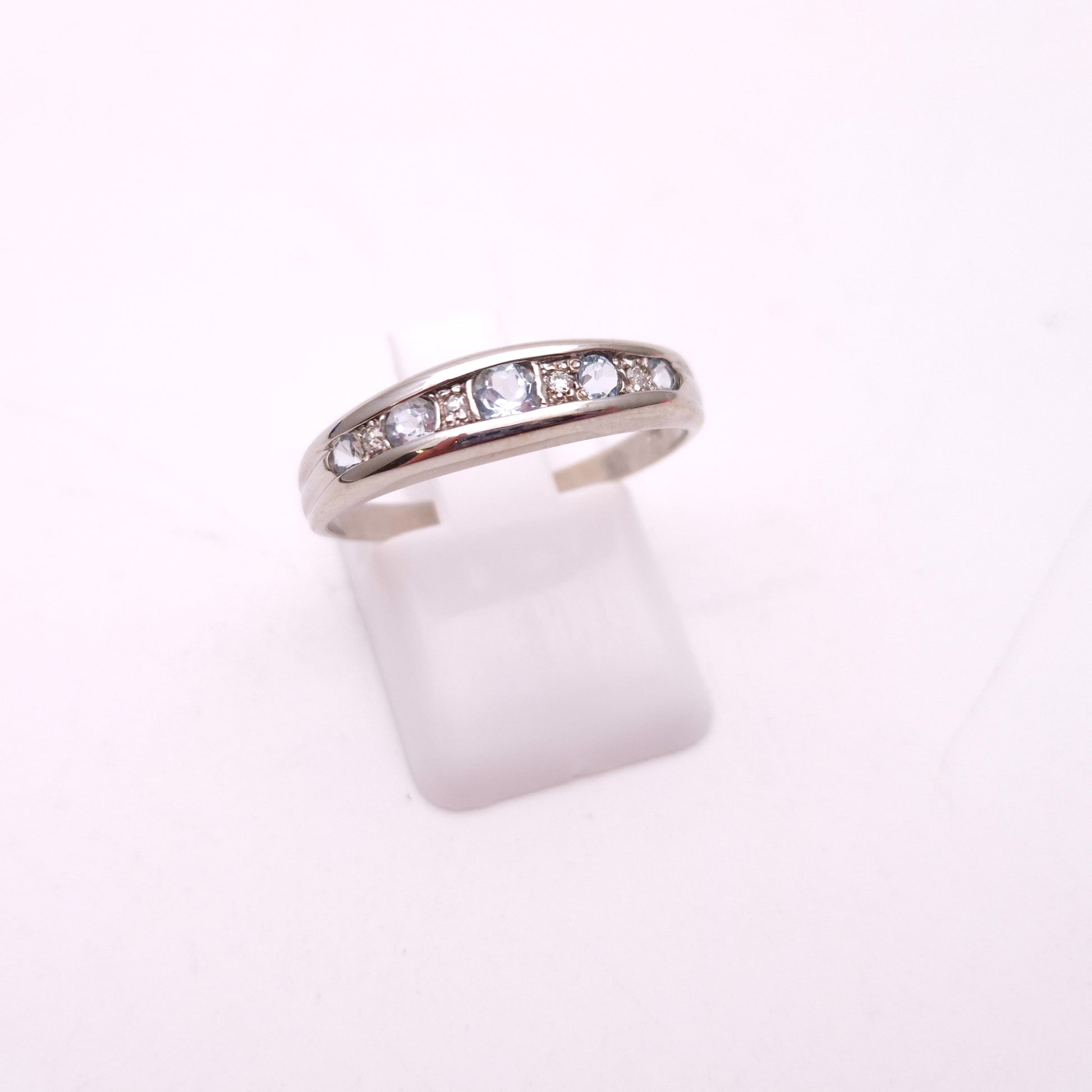 9ct White gold Aquamarine and Diamond Multistone Row Ring