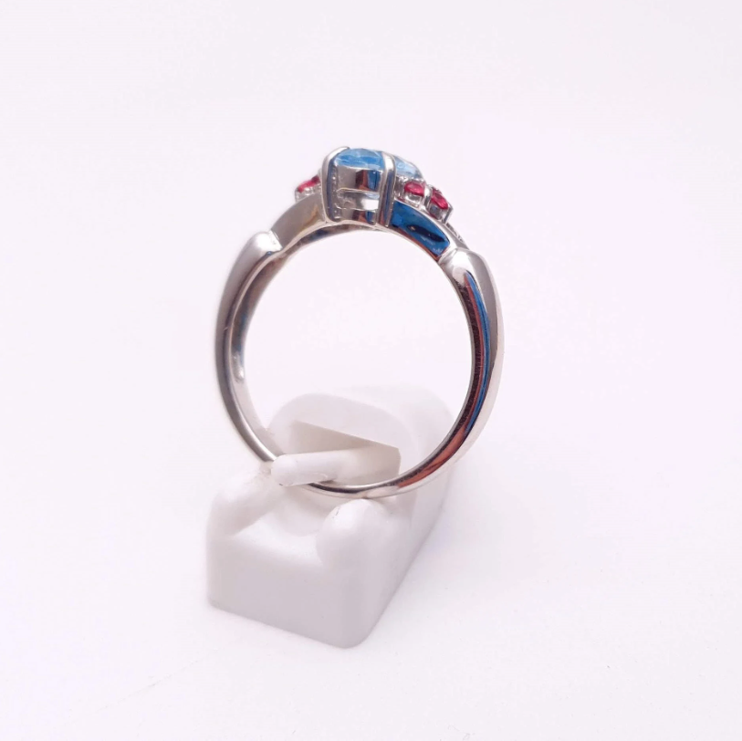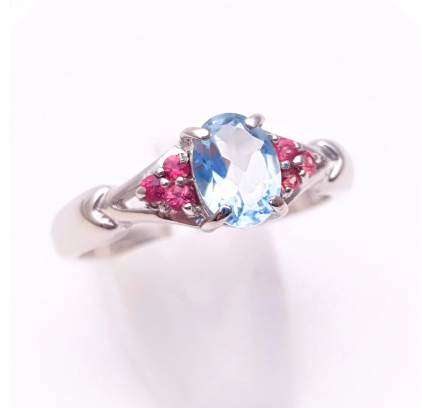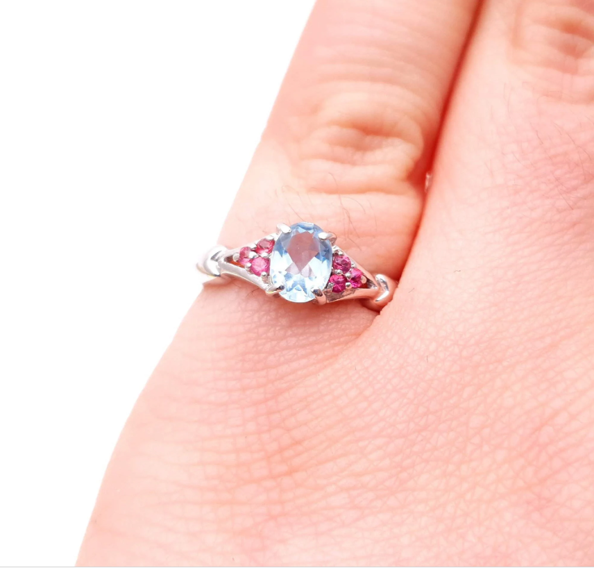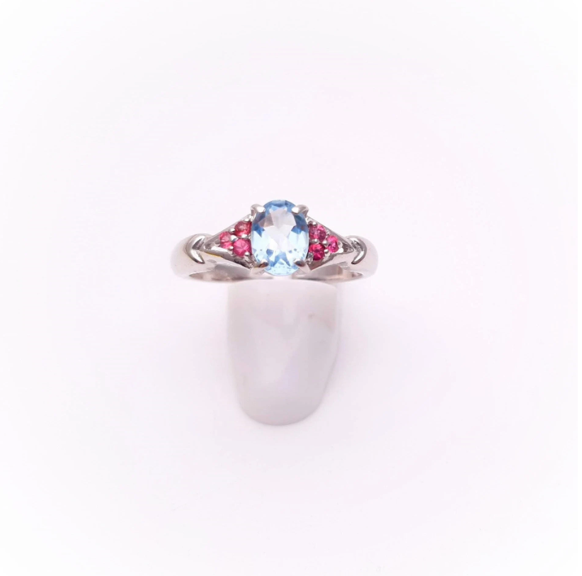 9ct White Gold Blue Topaz and Pink Stone Ring