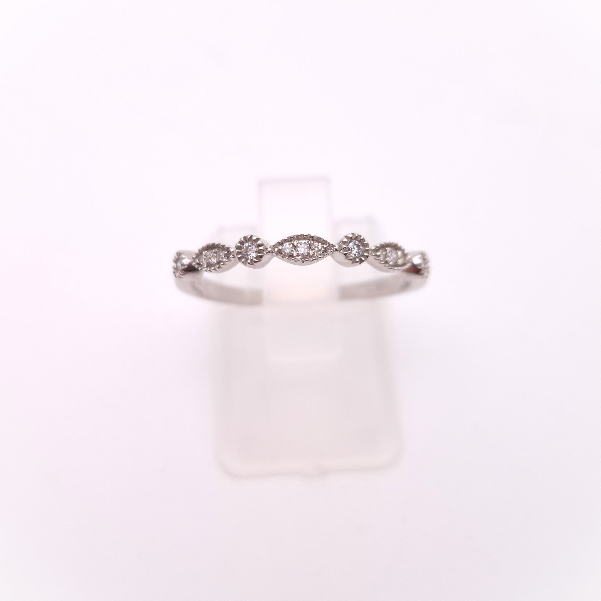 The entire band is constructed from smooth, durable 9-carat white gold. The narrow, comfortable profile makes this ring exceptionally versatile. It is ideal for wearing as a stunning, understated wedding band, a thoughtful anniversary ring, or a beautiful everyday stacking piece.