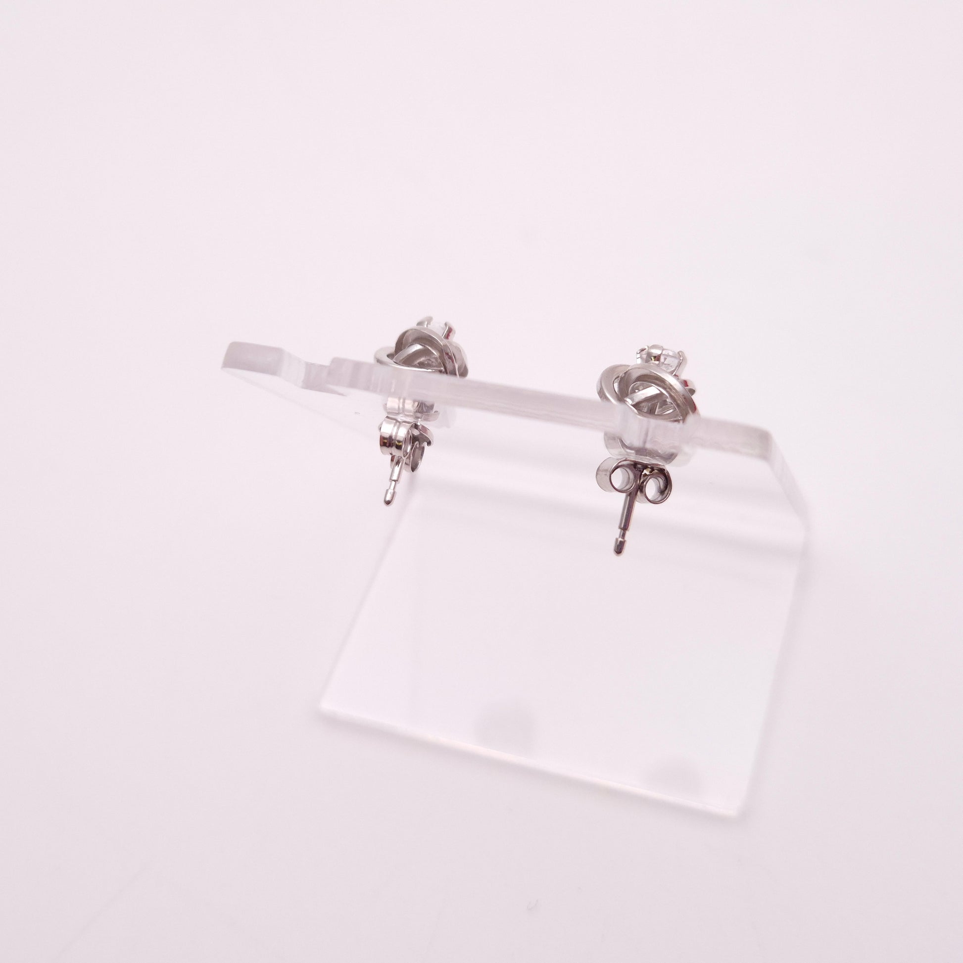 This lovely pair of stud earrings offers a delicate and brilliant sparkle in a timeless knot motif. They are crafted in polished 9ct white gold, providing a bright, cool-toned metal that enhances the clarity of the central stone.