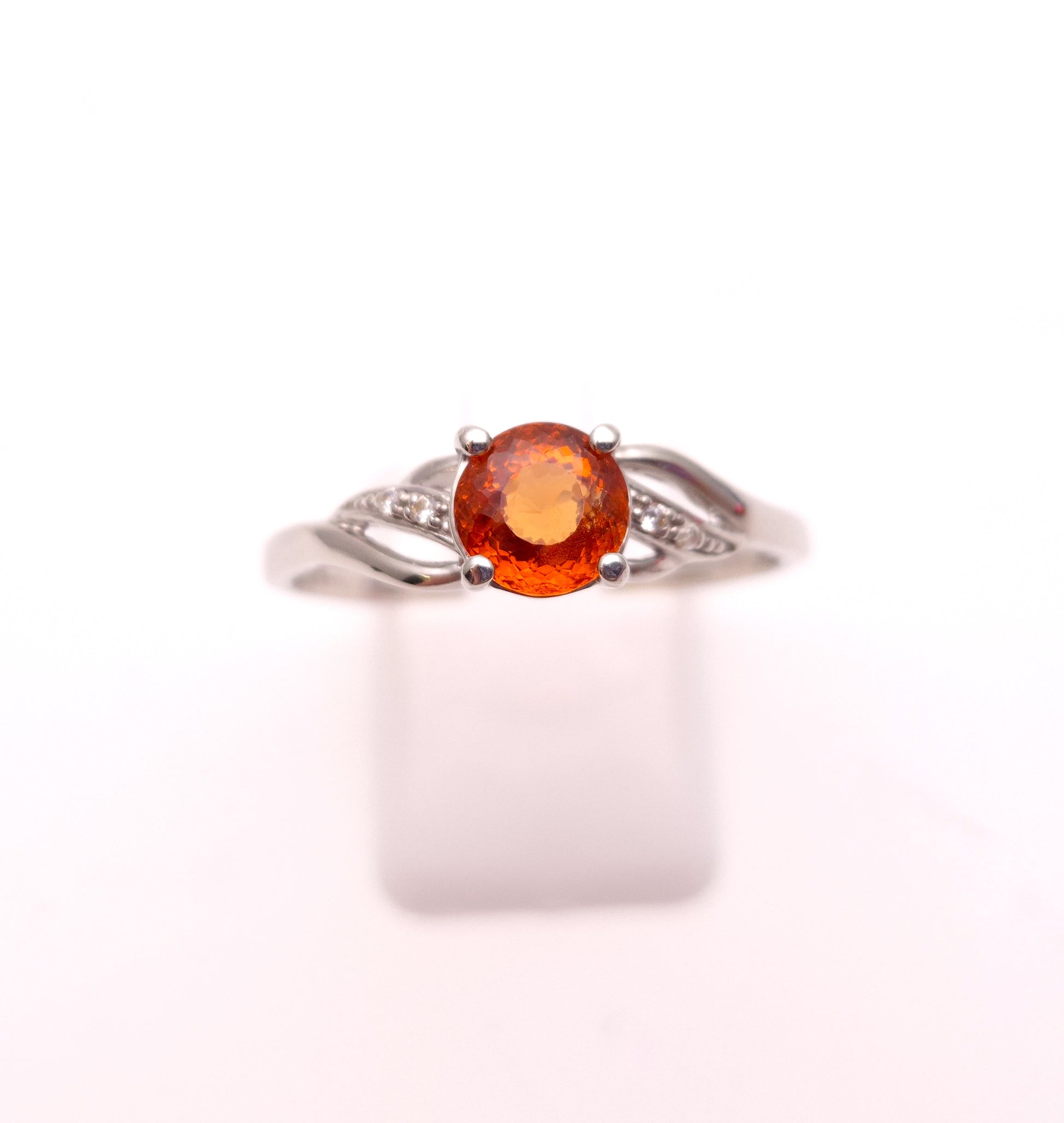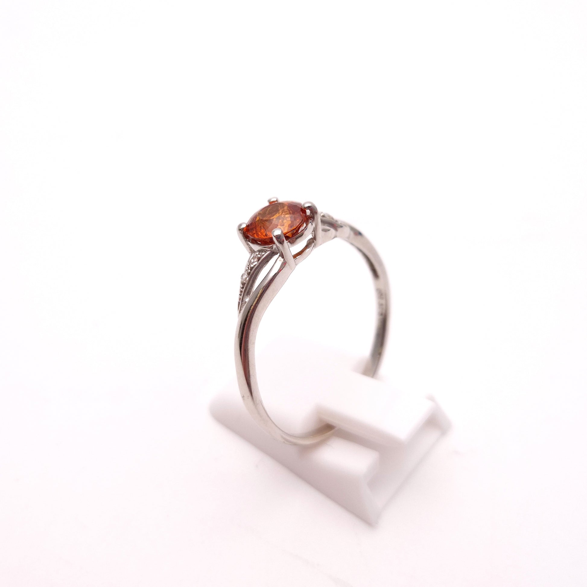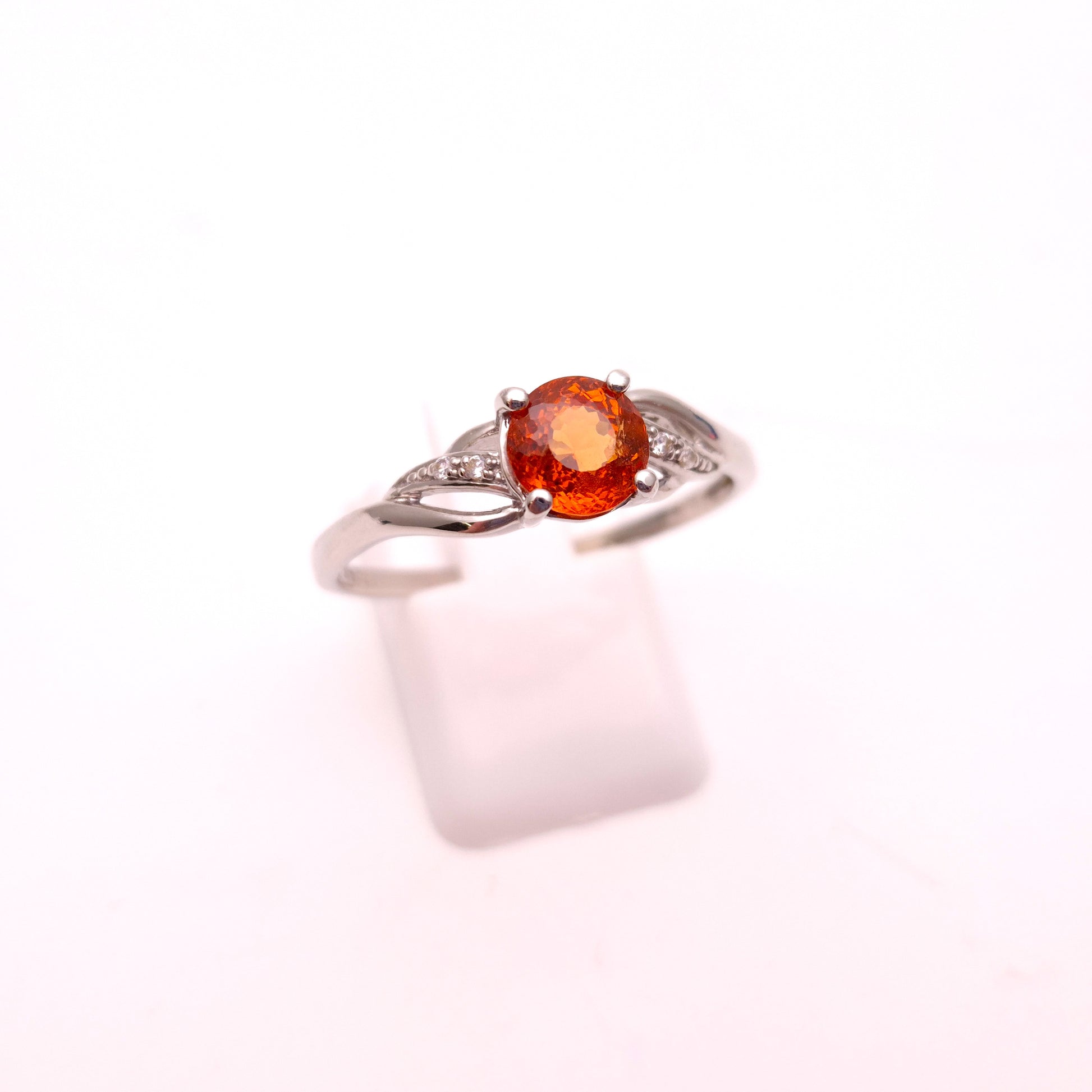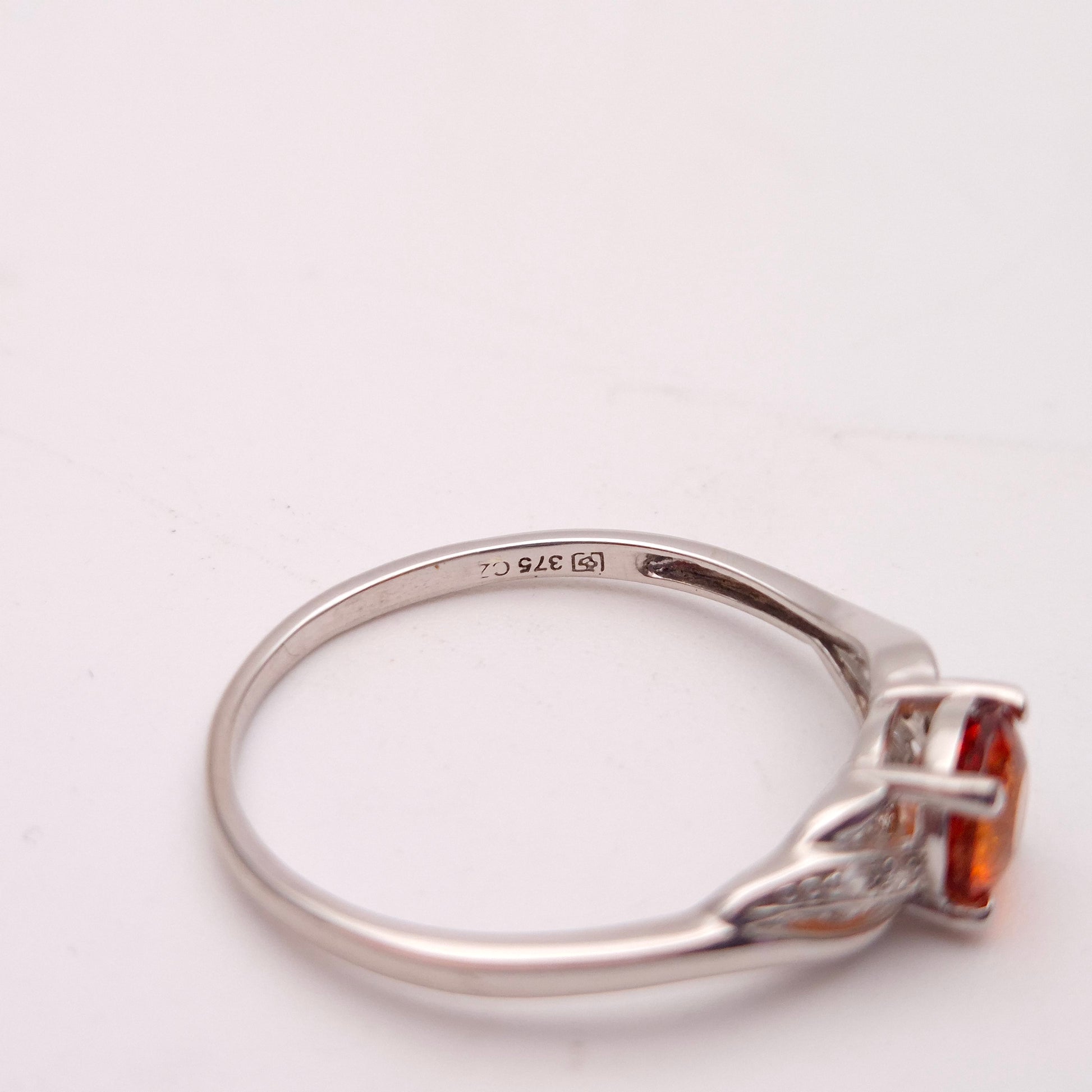 9ct White Gold Spessartite Garnet and White Stone Ring
