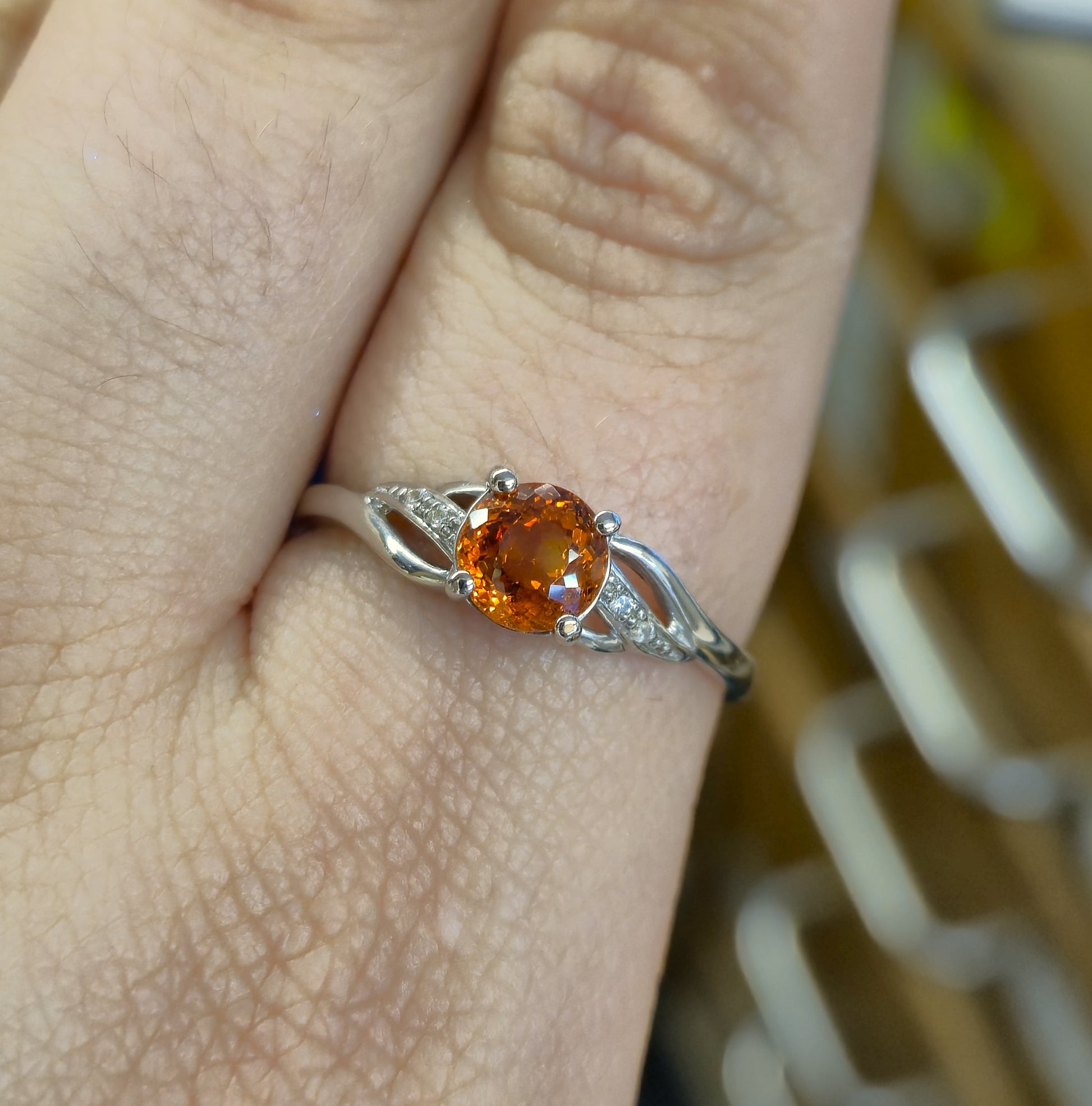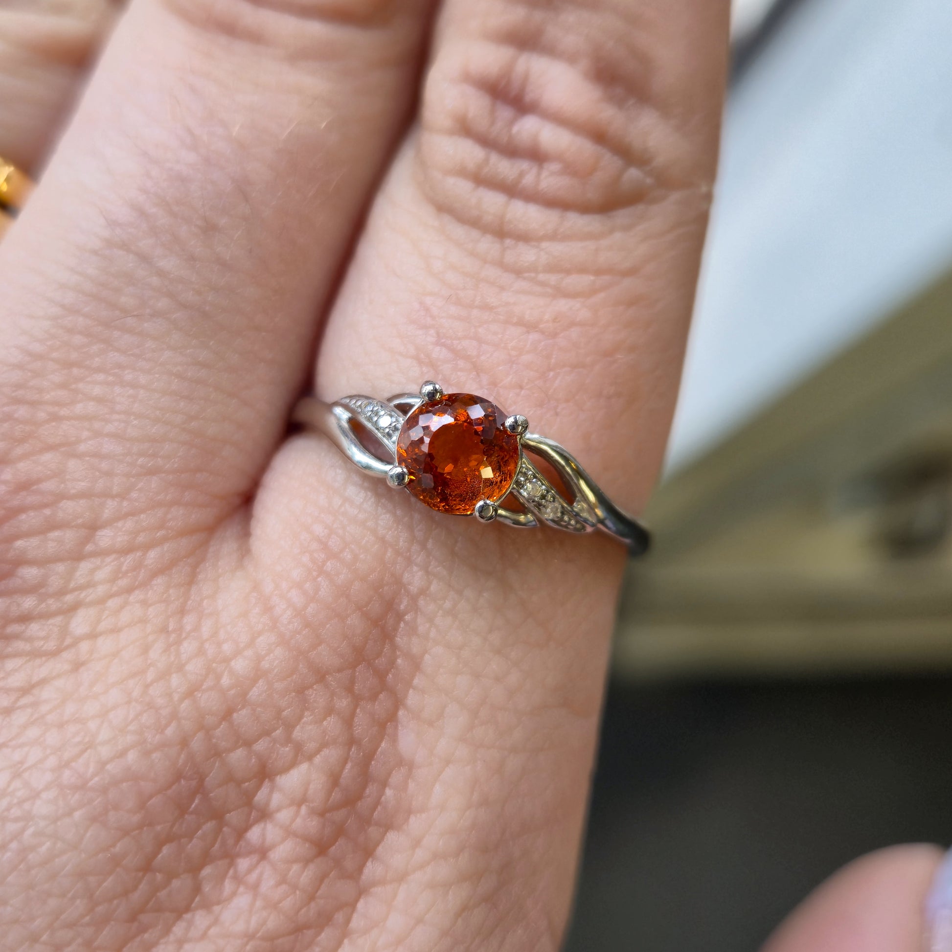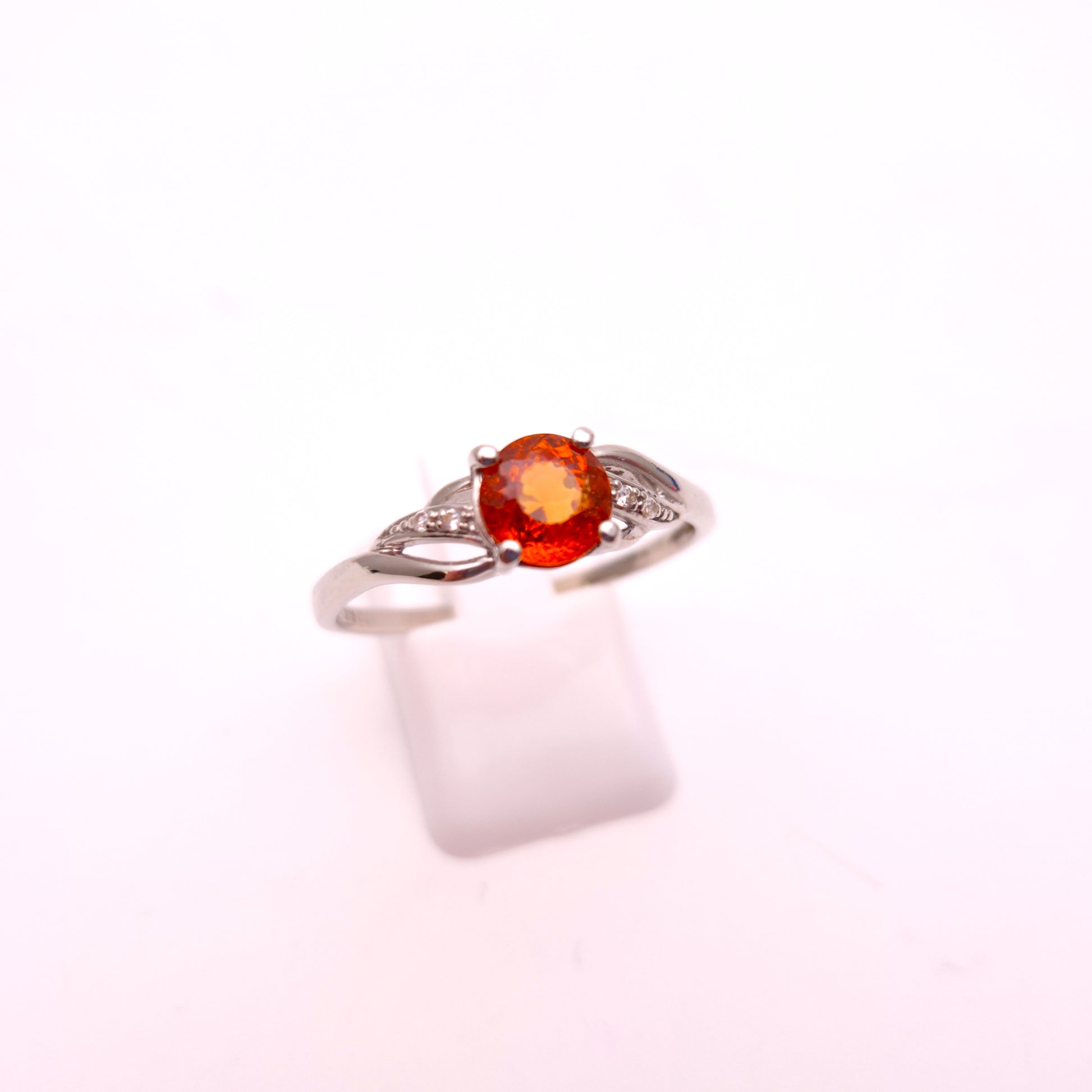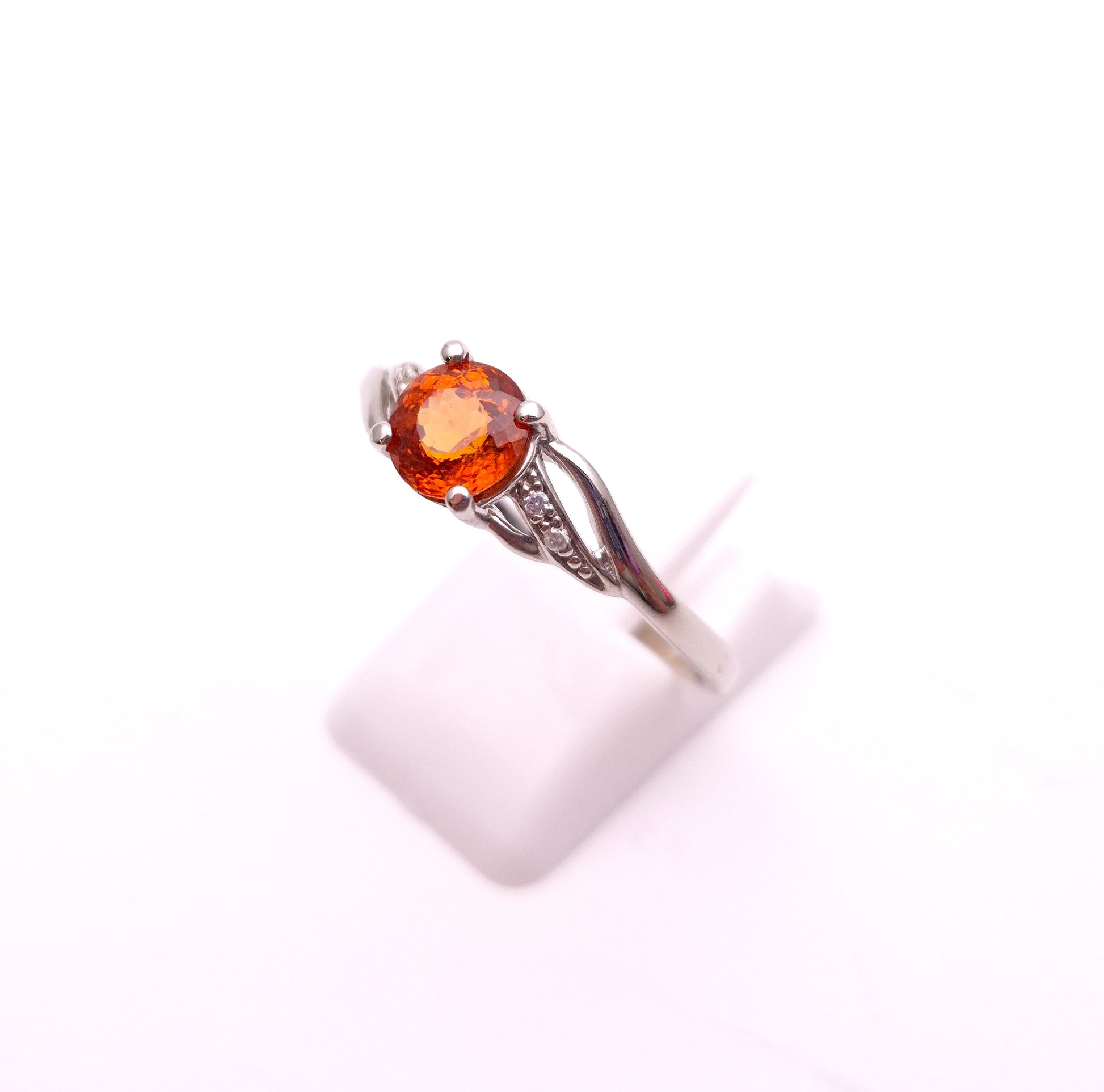 9ct White Gold Spessartite Garnet and White Stone Ring