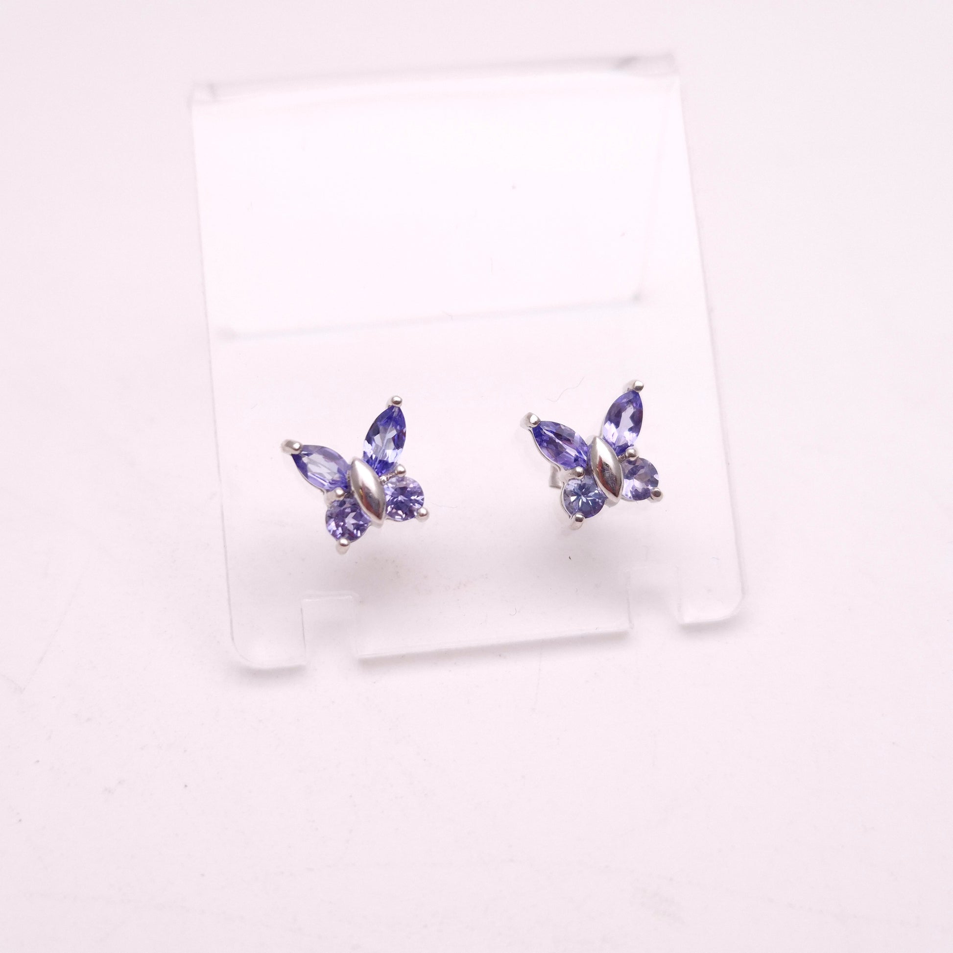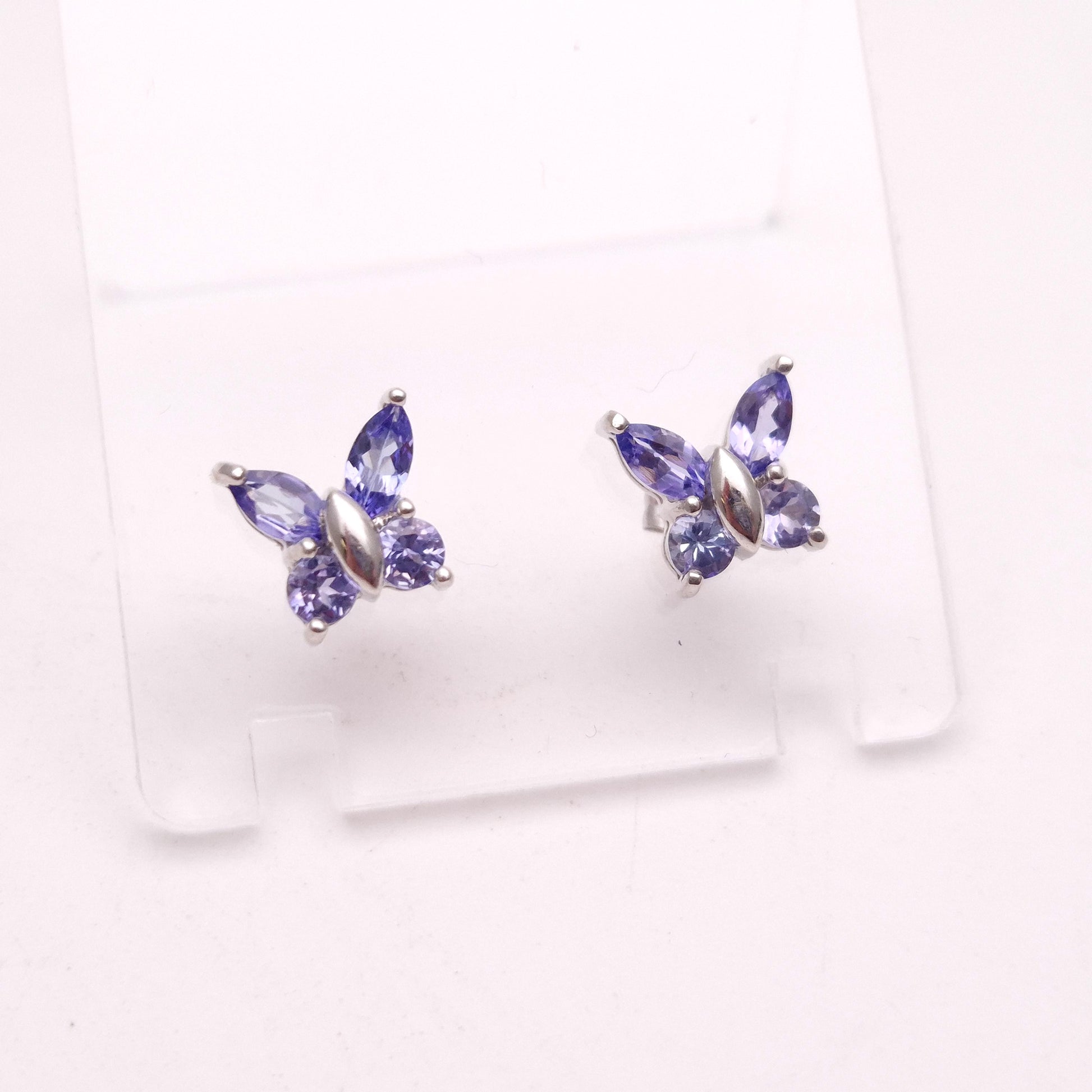 9ct White Gold Tanzanite Butterfly Stud Earrings