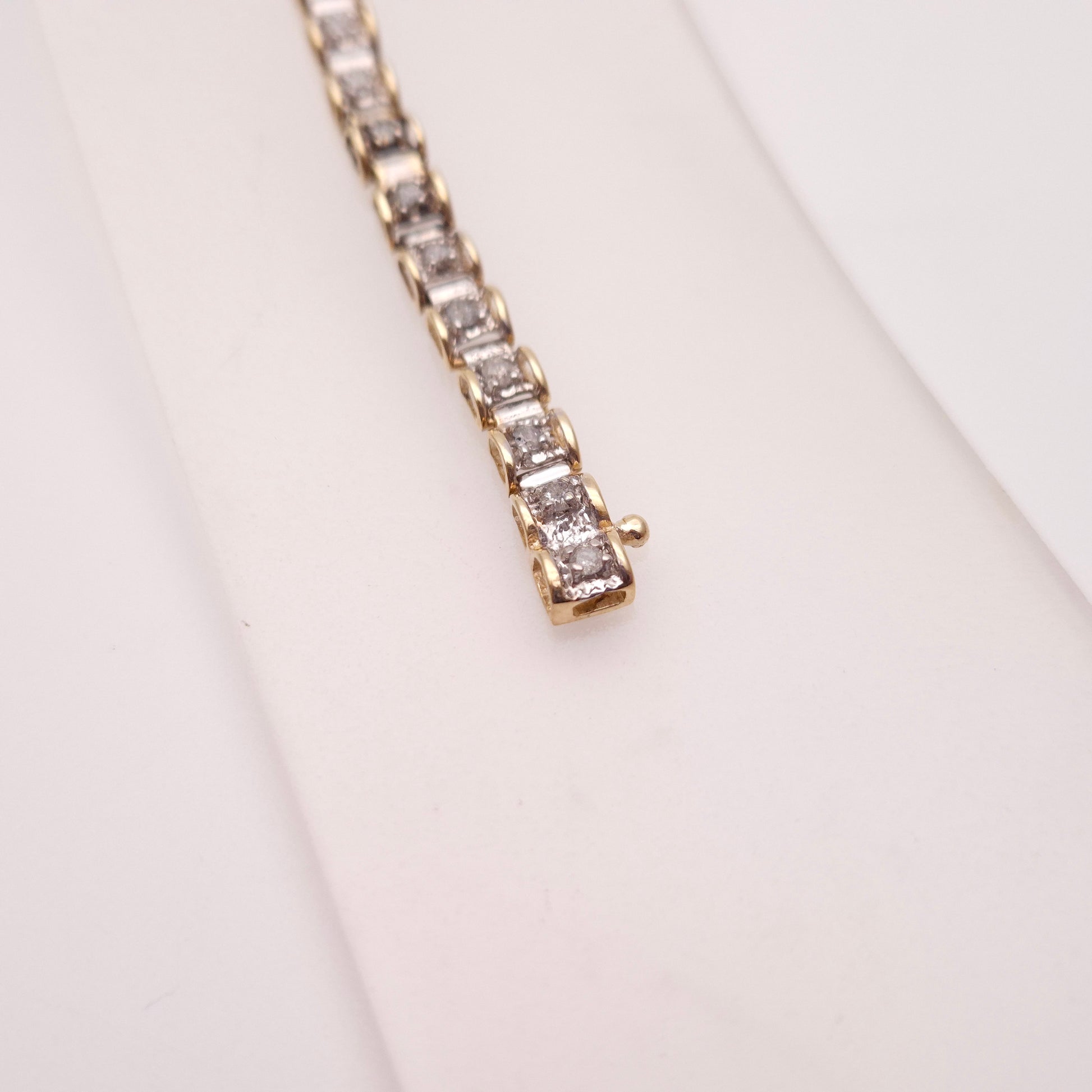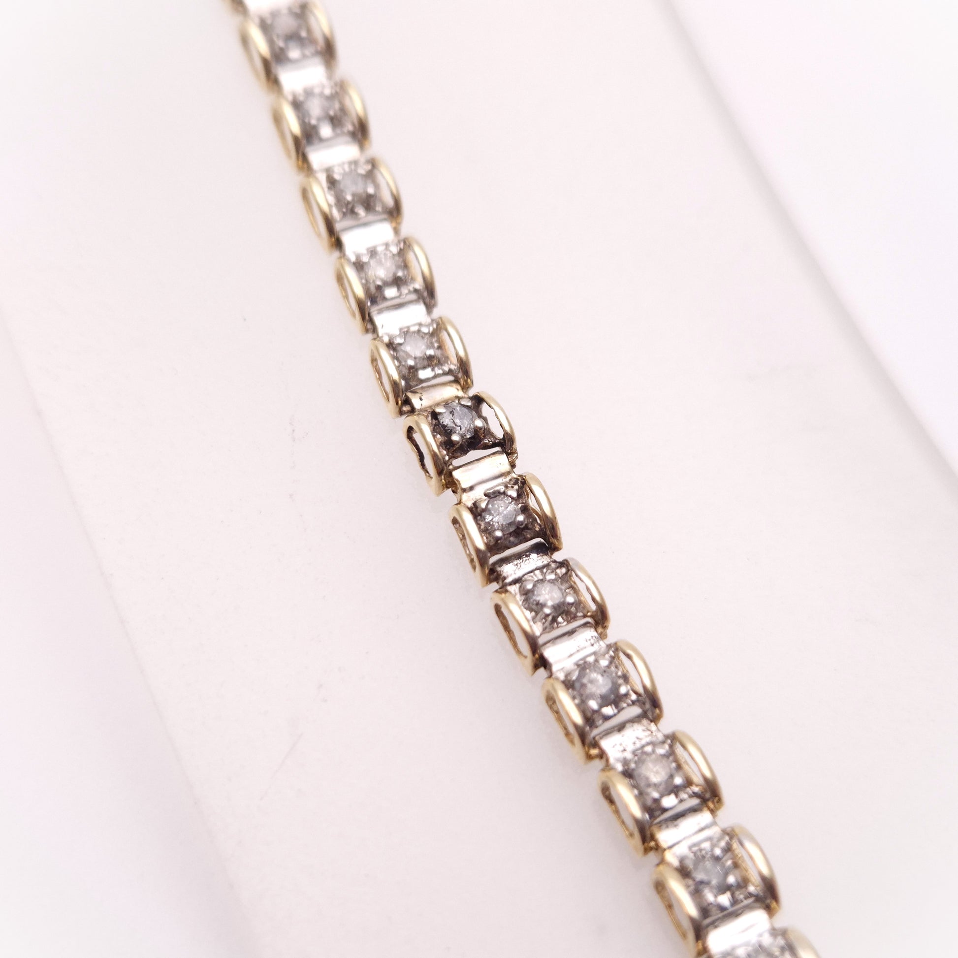 9ct Yellow and White Gold Two Tone Diamond Set Tennis Bracelet